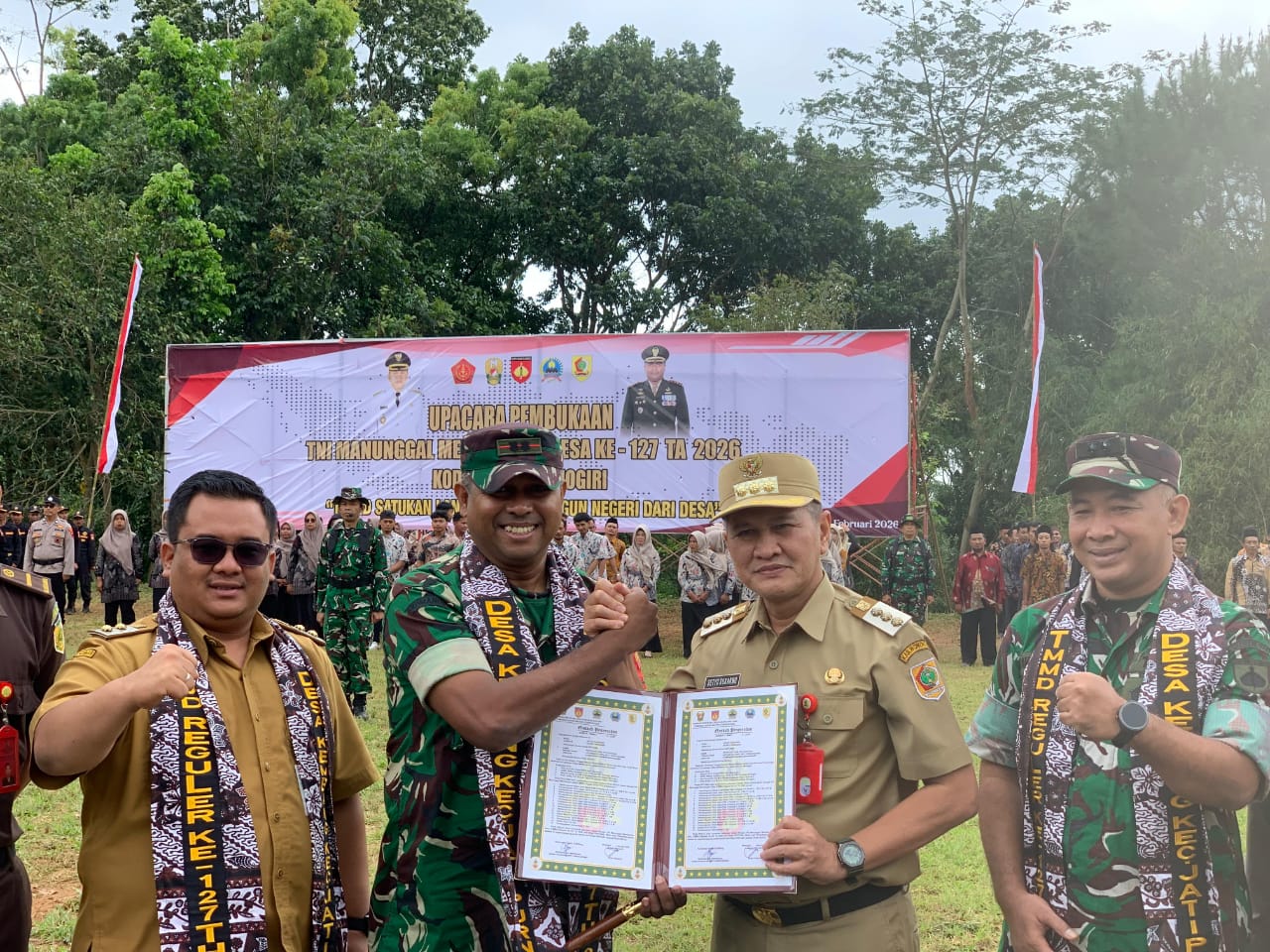 Bupati Wonogiri Setyo Sukarno secara resmi membuka Upacara Pembukaan TMMD Reguler Ke-127 Tahun 2026 bertempat dilapangan Desa Kembang Kecamatan Jatipurno, Selasa (10/02/2026).