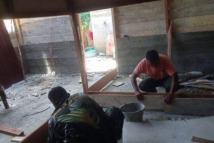 LCN – Aceh Barat – Ketukan palu menggema dari tangan Personel Satgas TMMD Reguler ke-127 Kodim 0105/Abar ketika menyatukan rangkaian tiang Rumah Tidak Layak Huni (RTLH) milik warga kurang ...