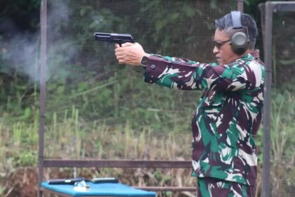 LCN – Makassar – Panglima Divisi Infanteri 3 Kostrad, Mayjen TNI Bagus Suryadi Tayo, M. Sc., melaksanakan latihan menembak pistol bersama para perwira jajaran Divisi Infanteri 3 Kostrad. K...