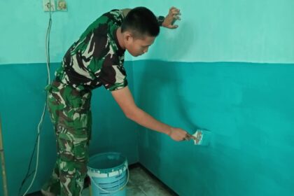 LCN – Pasuruan, – Suara gergaji listrik memecah pagi di halaman SMP Negeri 2 Gondangwetan. Prajurit berseragam loreng TNI AD tampak bergantian naik tangga bambu memasang plafon gypsum baru...