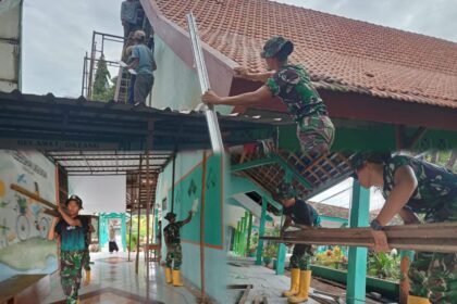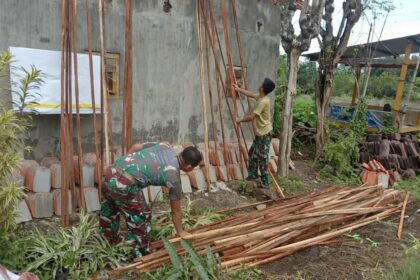 LCN – Pasuruan, – Suasana pagi yang masih diselimuti gerimis tipis, kembali bernapas bersama irama palu dan derit bambu. Dihalaman SMP Negeri 2 Gondangwetan prajurit Satgas TNI Manunggal M...