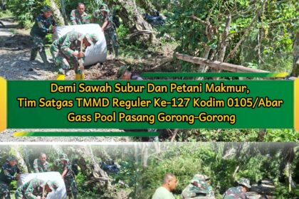 LCN – Aceh Barat – Demi terwujudnya sawah yang subur dan petani yang makmur, Tim Satgas TMMD Reguler ke-127 Kodim 0105/Abar bersama masyarakat “gass pool” melaksanakan gotong royong pemasa...