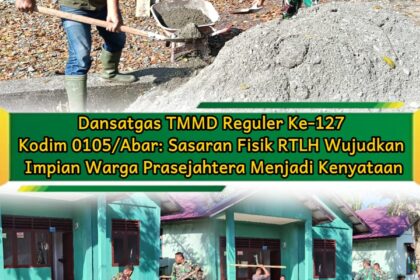 LCN – Aceh Barat – Dari kepedulian menjadi aksi nyata, Dansatgas TMMD Reguler ke-127 Kodim 0105/Abar Letkol Inf S. Kembaren,S.E.,M.I.P.,CFrA., merealisasikan program Rumah Tidak Layak Huni (RTLH...