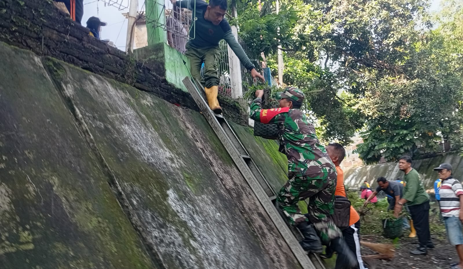 LCN – Surakarta – Babinsa Kelurahan Punggawan Koramil 02/Banjarsari Kodim Surakarta Serka Junaidi bersama warga masyarakat Kelurahan Punggawan melaksanakan kegiatan pembersihan aliran sungai sebagai upaya antisipasi terjadinya banjir, Kamis (16/04/2026).