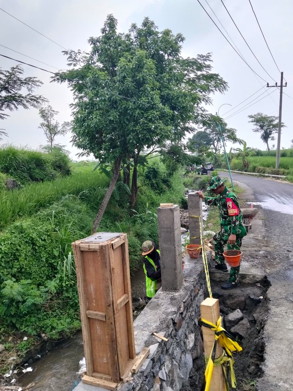 LCN – Pasuruan, – Koptu Riawan Babinsa Sekarmojo melaksanakan kegiatan Karya Bhakti bersama warga dalam rangka pembersihan dan normalisasi saluran² air serta membuat tanggul plengsengan sungai bertempat di Dusun Mojo RT.36 RW.23 Desa Sekarmojo Kecamatan, Purwosari Kabupaten, Pasuruan. Rabu, (17/12/2025).