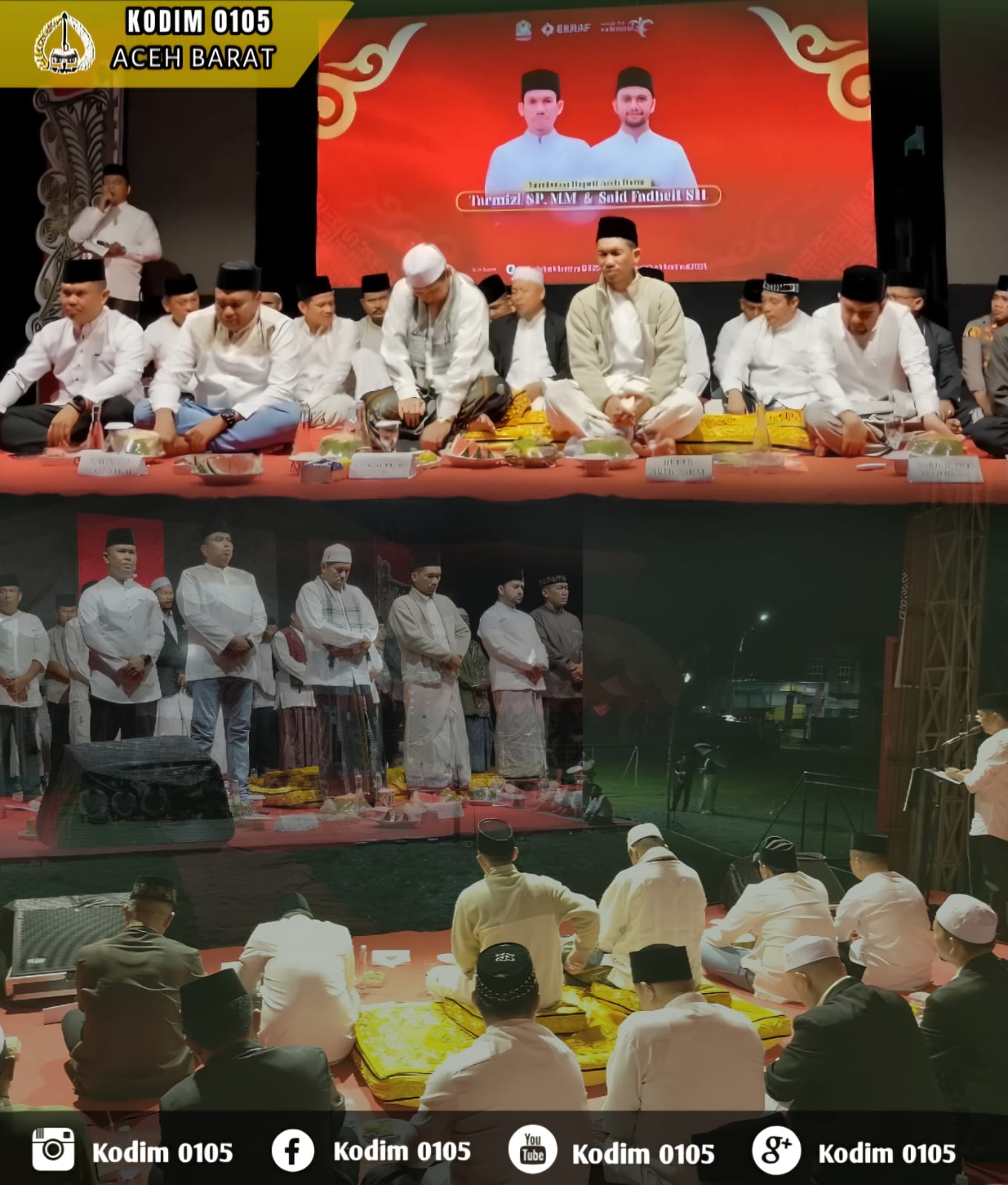LCN – Aceh Barat – Dandim 0105/Abar Letkol Inf S Kembaren,S.E.,M.I.P.,CFrA., menghadiri acara dzikir dan do’a bersama yang digelar oleh Pemda Aceh Barat di Pelataran Gedung Olahraga dan Seni (GOS) Jalan Nasional Meulaboh- Tapak Tuan Desa Pasi Pinang Kecamatan Meureubo, Sabtu malam (13/12/2025)