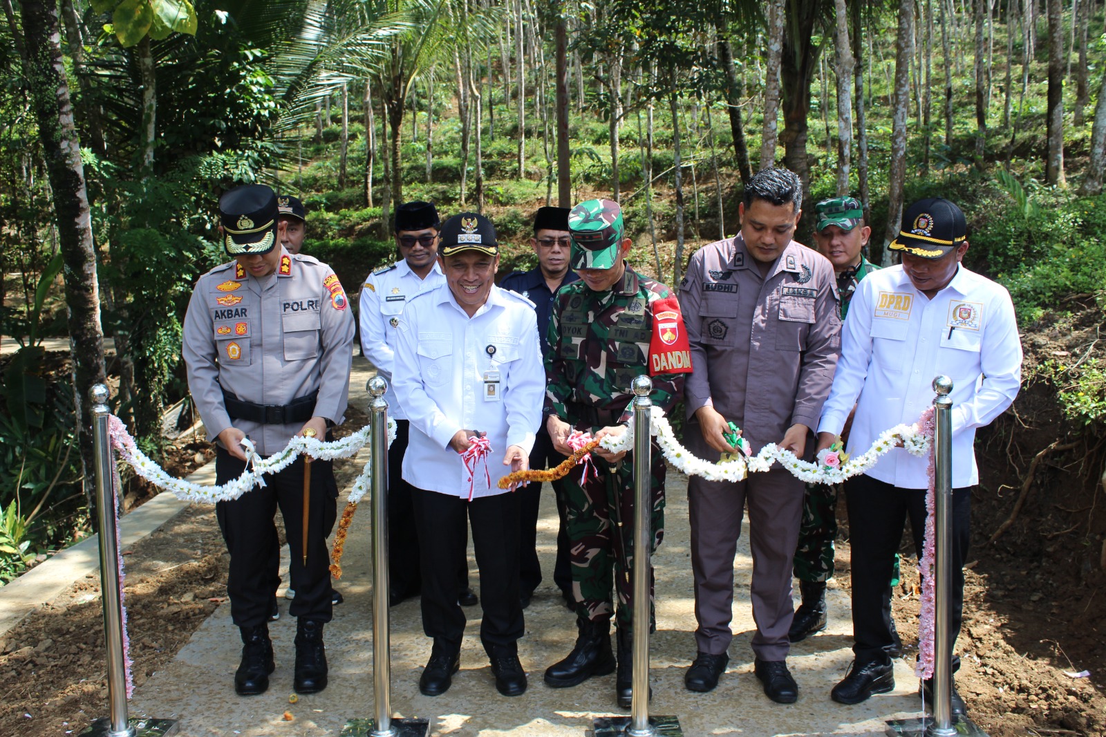 LCN – Wonosobo – Danramil 0707/Wonosobo Letkol Inf Yoyok Suyitno S.Sos memimpin rombongan Forkopimda Kabupaten Wonosobo melakukan peninjauan langsung terhadap hasil pelaksanaan Program TNI Manunggal Membangun Desa (TMMD) Sengkuyung Tahap I di Desa Trimulyo, Kecamatan Wadaslintang, Kabupaten Wonosobo.