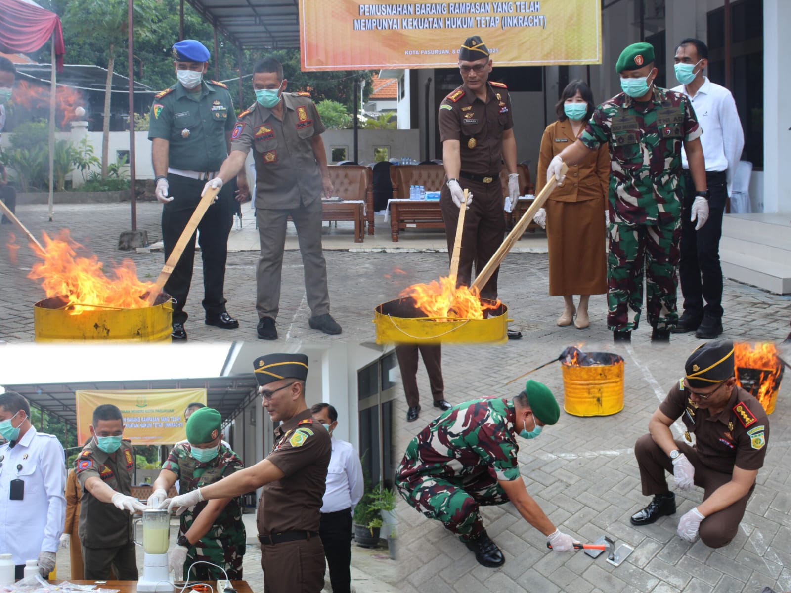 Dandim 0819 Pasuruan, Letkol Inf Boga Bramiko, M.Han, memberikan apresiasi terhadap Kejari Kota Pasuruan yang terus menjalankan tugas penegakan hukum secara tegas dan konsisten. “Kami sangat mendukung langkah Kejaksaan dalam memusnahkan barang bukti inkracht ini. TNI selalu siap bersinergi untuk menjaga stabilitas keamanan dan ketertiban diwilayah Pasuruan. Pemusnahan ini menjadi bukti bahwa negara hadir secara nyata dalam memberantas kejahatan dan memastikan keamanan masyarakat,”ujarnya.