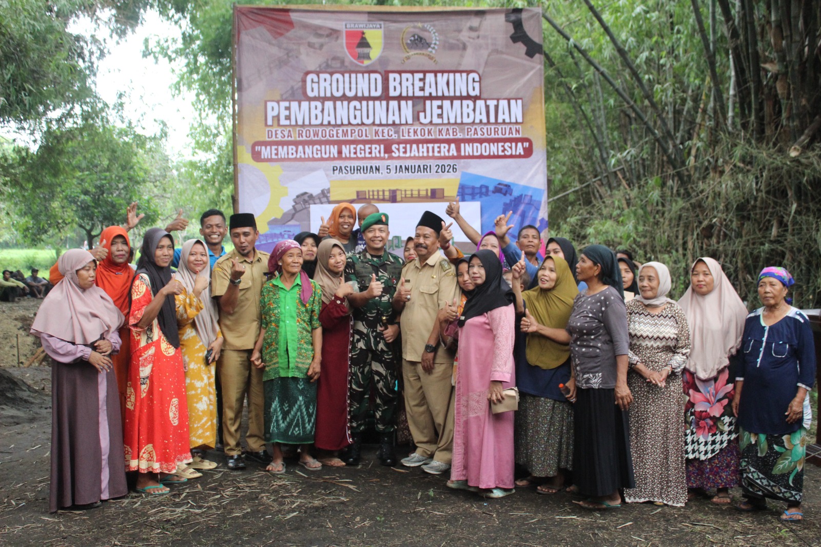 LCN – Pasuruan, – Dandim 0819/Pasuruan Letkol Inf Boga Bramiko, M. Han., memimpin secara resmi peletakan batu pertama (Groundbreaking) menandai dimulainya pembangunan infrastruktur penting yang menghubungkan antara Desa Rowo Gempol dengan Desa Branang Kecamatan Lekok, Kabupaten Pasuruan, Jawa Timur. Senin, (05/01/2026)