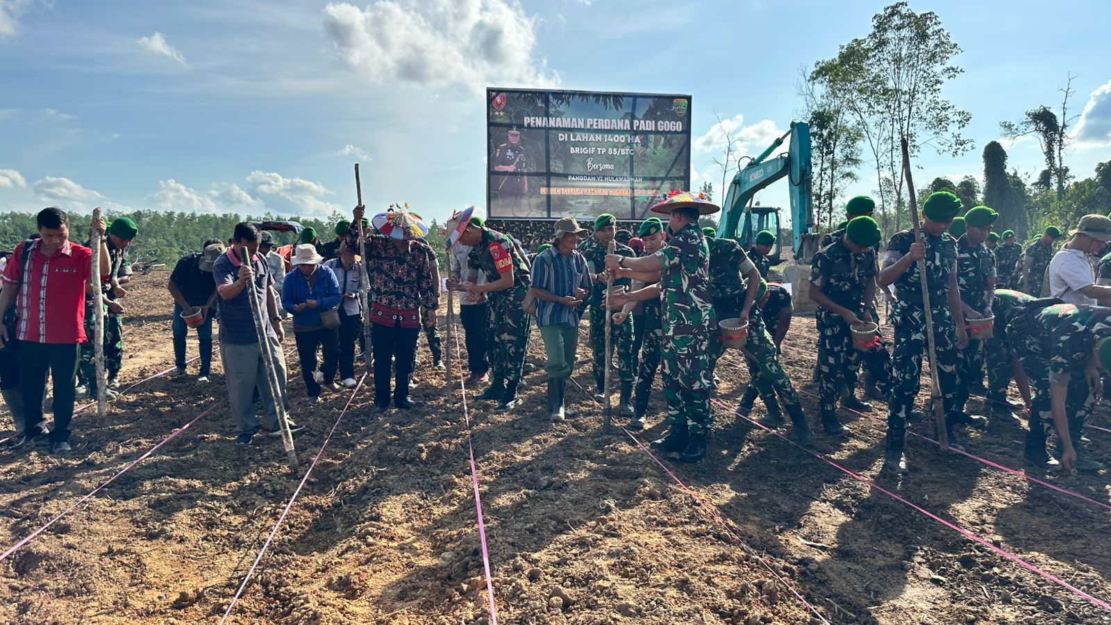 Kunjungan tersebut dilakukan dalam rangka meninjau pelaksanaan penanaman perdana padi gogo di lahan seluas 5 hektar yang digarap oleh Brigif TP 85/BTC dan Yon TP 827/MCY. Kegiatan ini merupakan bagian dari program ketahanan pangan nasional yang diinisiasi oleh TNI guna memanfaatkan lahan tidur menjadi lahan produktif.