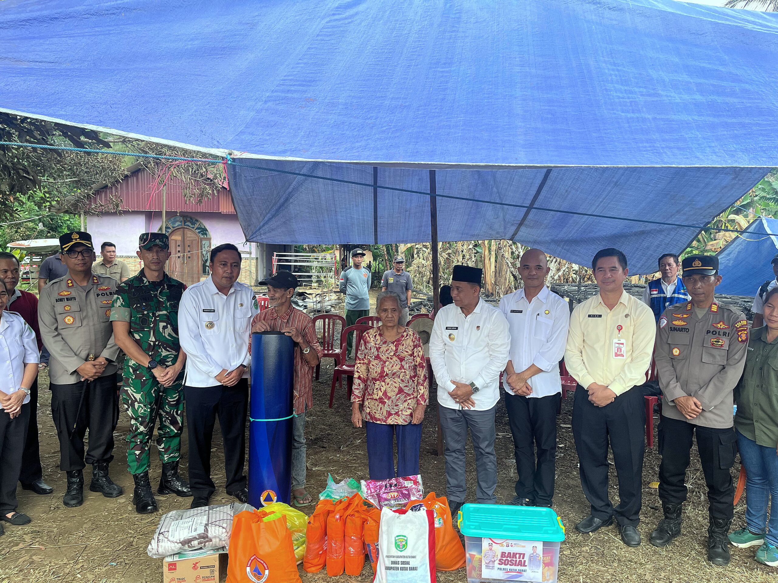 Pada kesempatan itu, Bupati juga menyerahkan bantuan berupa 8 karung beras (10 kg), 15 kg gula pasir, 5 dos mie instan, dan 10 dos air mineral kepada korban terdampak kebakaran.