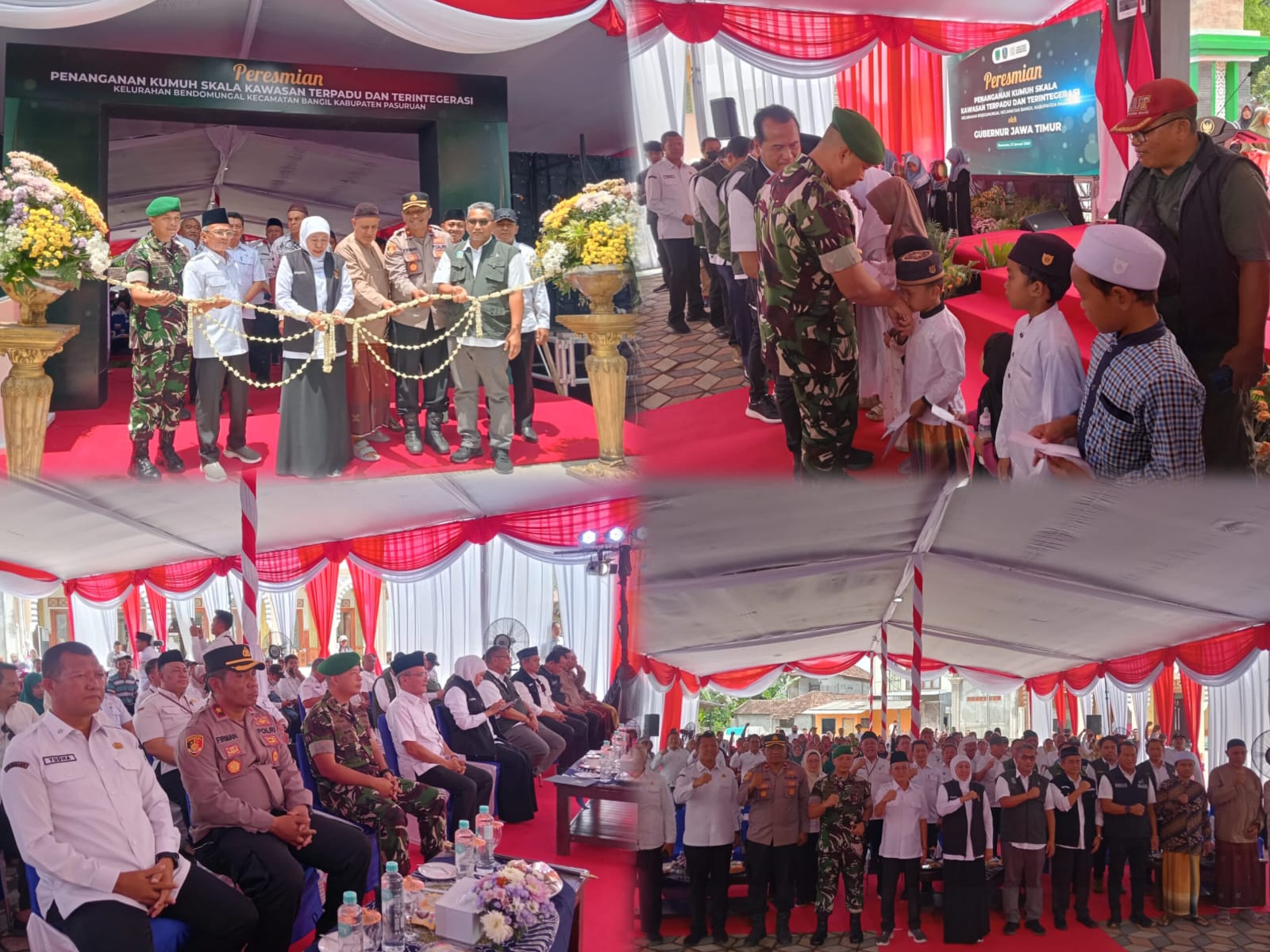 LCN – Pasuruan, Komandan Kodim 0819/Pasuruan, Letkol Inf Boga Bramiko, M.Han., menghadiri kegiatan Peresmian Penanganan Kawasan Kumuh Skala Kawasan Terpadu dan Terintegritasi yang berlokasi di Kelurahan Bendomungal, Kecamatan Bangil, Kabupaten Pasuruan, Jawa Timur, Rabu (21/01/2026).