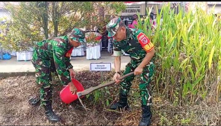 LCN – KUTAI BARAT – Danramil 0912-06/Damai Lettu Arm Setiono menghadiri sekaligus mengikuti kegiatan Penanaman Pohon Penghijauan Lingkungan dalam rangka Hari Menanam Pohon Indonesia (HMPI) yang berlangsung diarea Kecamatan Damai, Kabupaten Kutai Barat, Kamis (27/11/2025).