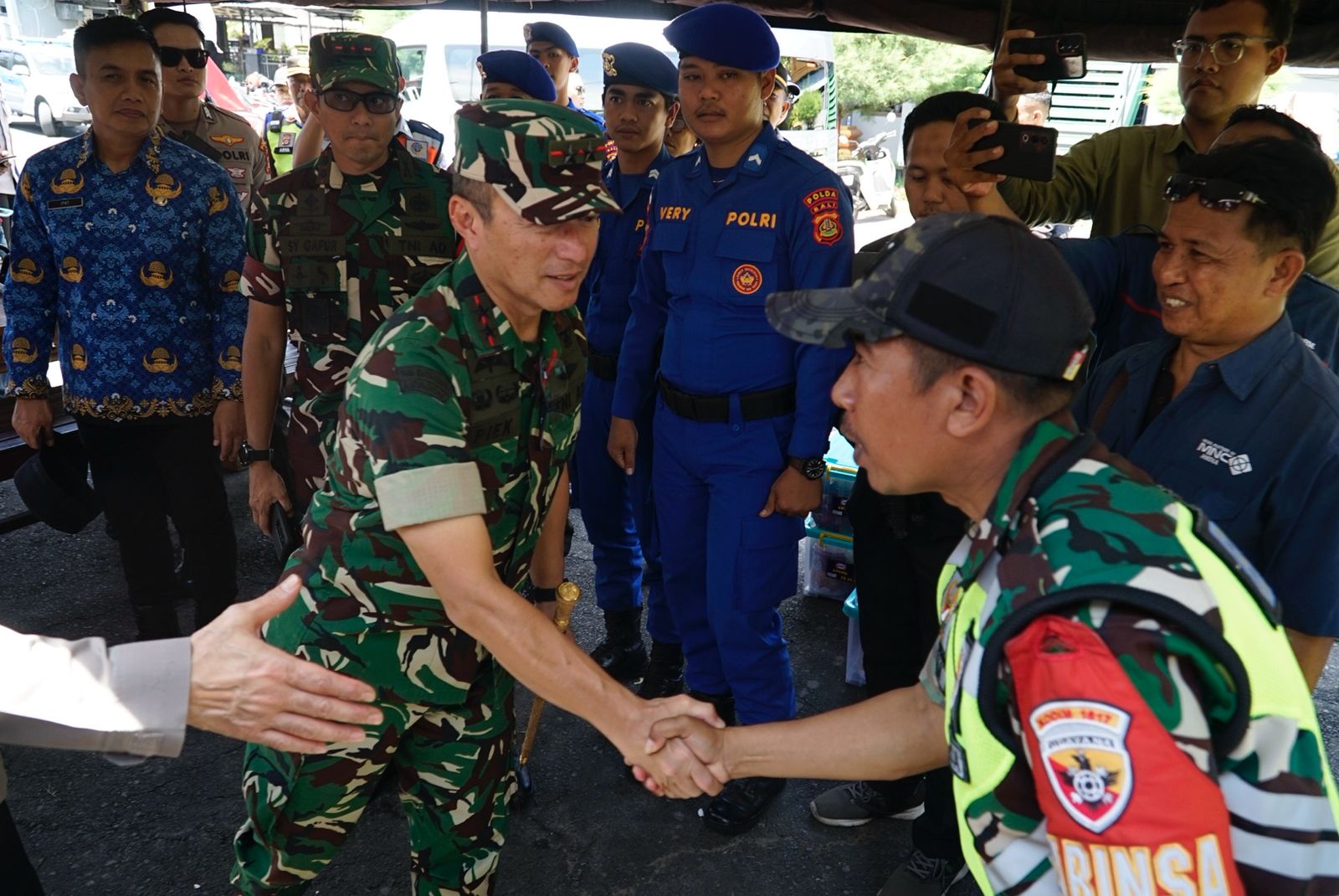 Setelah pemantauan udara, Pangdam bersama rombongan turun langsung ke Pos Terpadu dan kawasan cargo untuk mengecek kesiapan personel gabungan serta sarana pendukung. Kegiatan ini juga diisi dengan pemberian tali asih sebagai bentuk perhatian kepada petugas yang berjaga digaris depan pengamanan mudik.