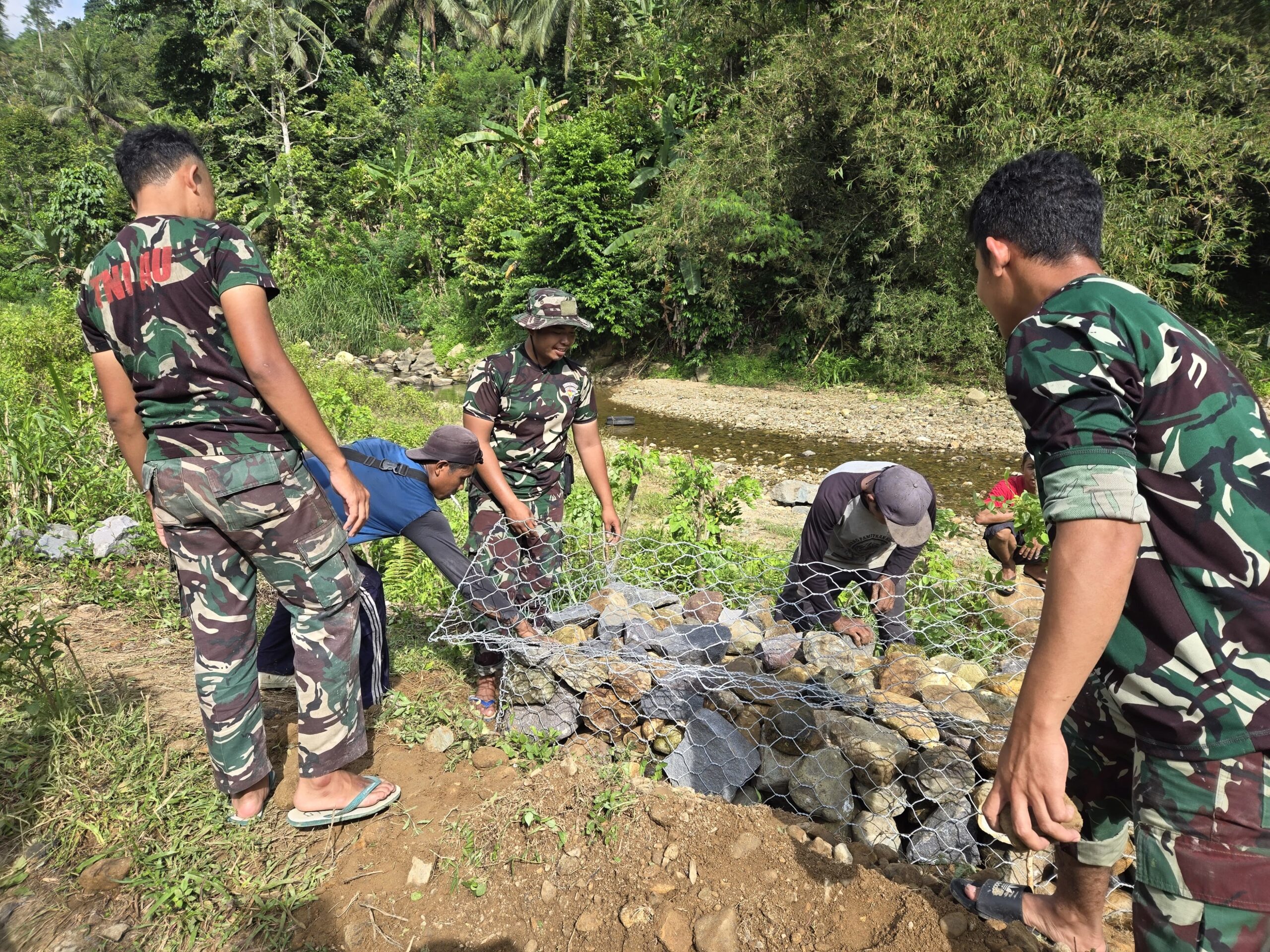 LCN – Dalam rangka pelaksanaan TNI Manunggal Membangun Desa (TMMD) ke-126 Tahun 2025, Satgas TMMD Kodim 0818/Malang-Batu bersama Satuan Satgas AURI dan masyarakat Desa Lebakharjo, Kecamatan Ampelgading, Kabupaten Malang, melaksanakan kegiatan pemasangan kawat bronjong ditepi sungai, Sabtu (25/10/2025).