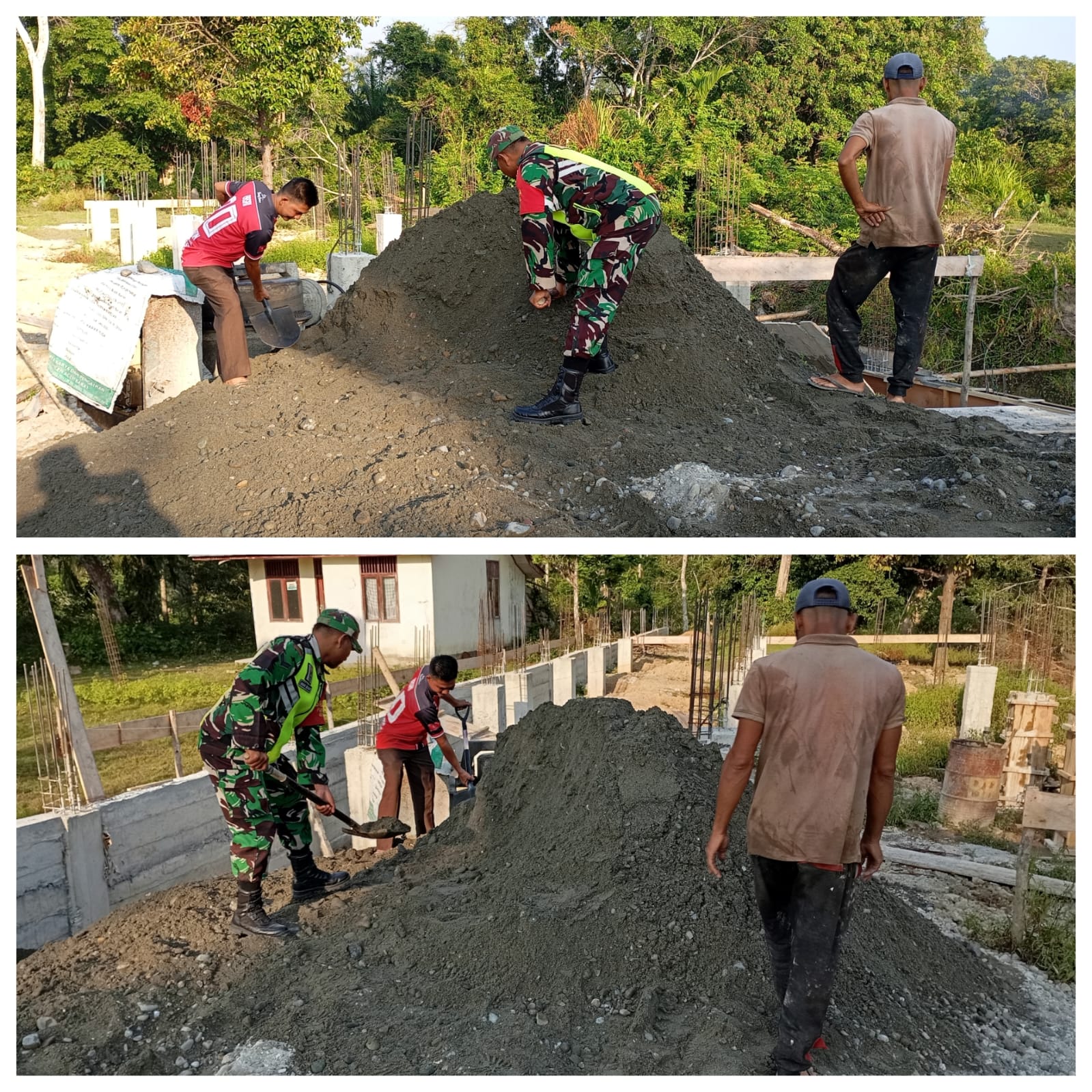 LCN – Bubon, -Dalam rangka Pembinaan Teritorial (Binter) guna mempertebal budaya kegotong-royongan di kehidupan bermasyarakat, Babinsa Posramil 06 Bubon Sertu Anang sukamto melaksanakan karya bakti pembangunan Rumah di Desa Layung Kecamatan Bubon Kabupaten Aceh barat.Minggu (25/01/2026).