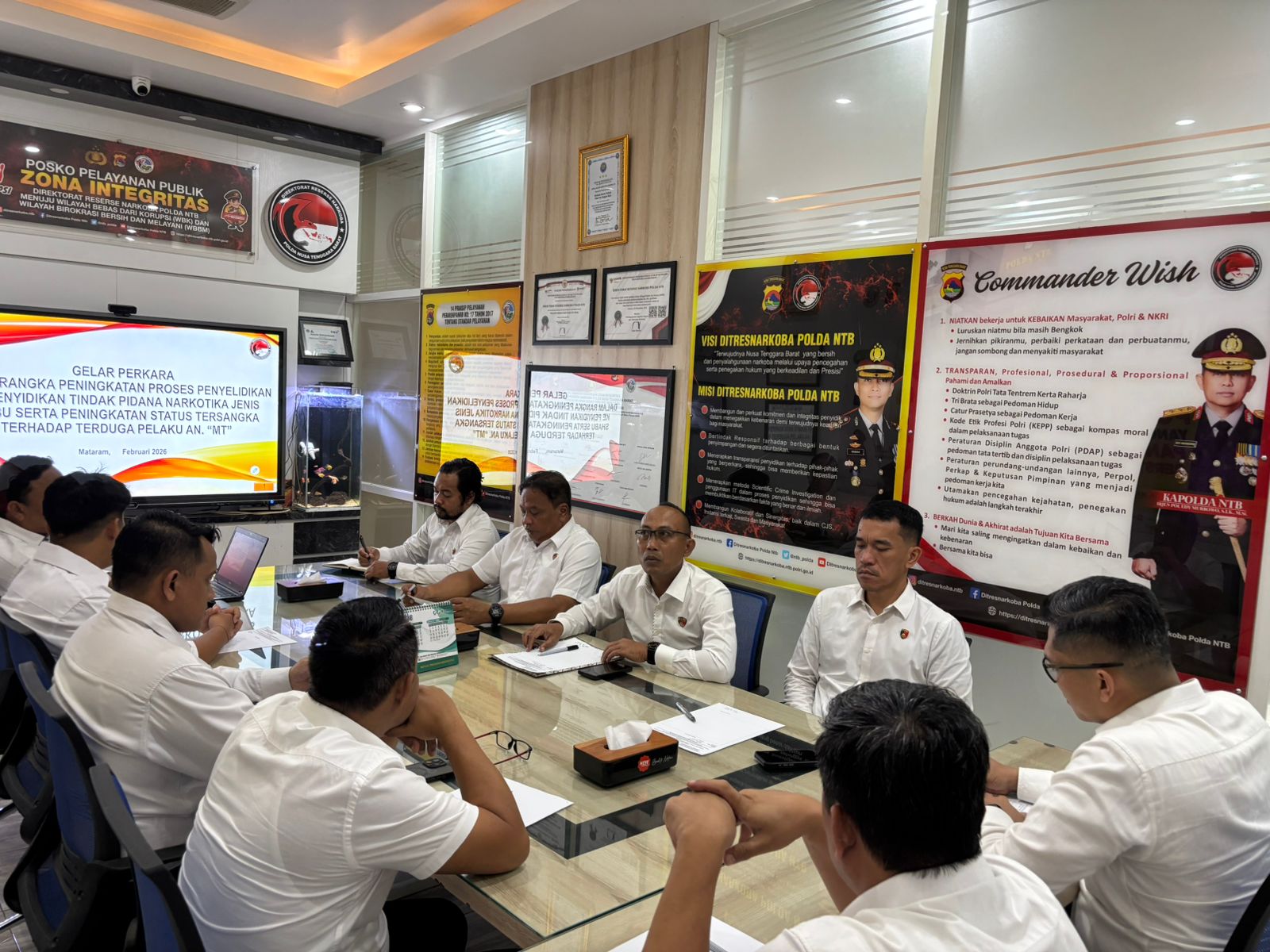 Gelar perkara dipimpin langsung Direktur Resnarkoba Polda NTB dan dihadiri Kabagwasidik, Kabagbinops, para Kasubdit, serta penyidik Subdit II Ditresnarkoba selaku tim yang menangani kasus tersebut. Hasil forum internal itu menyimpulkan bahwa perkara telah memenuhi unsur pidana untuk ditingkatkan dari tahap penyelidikan ke penyidikan.