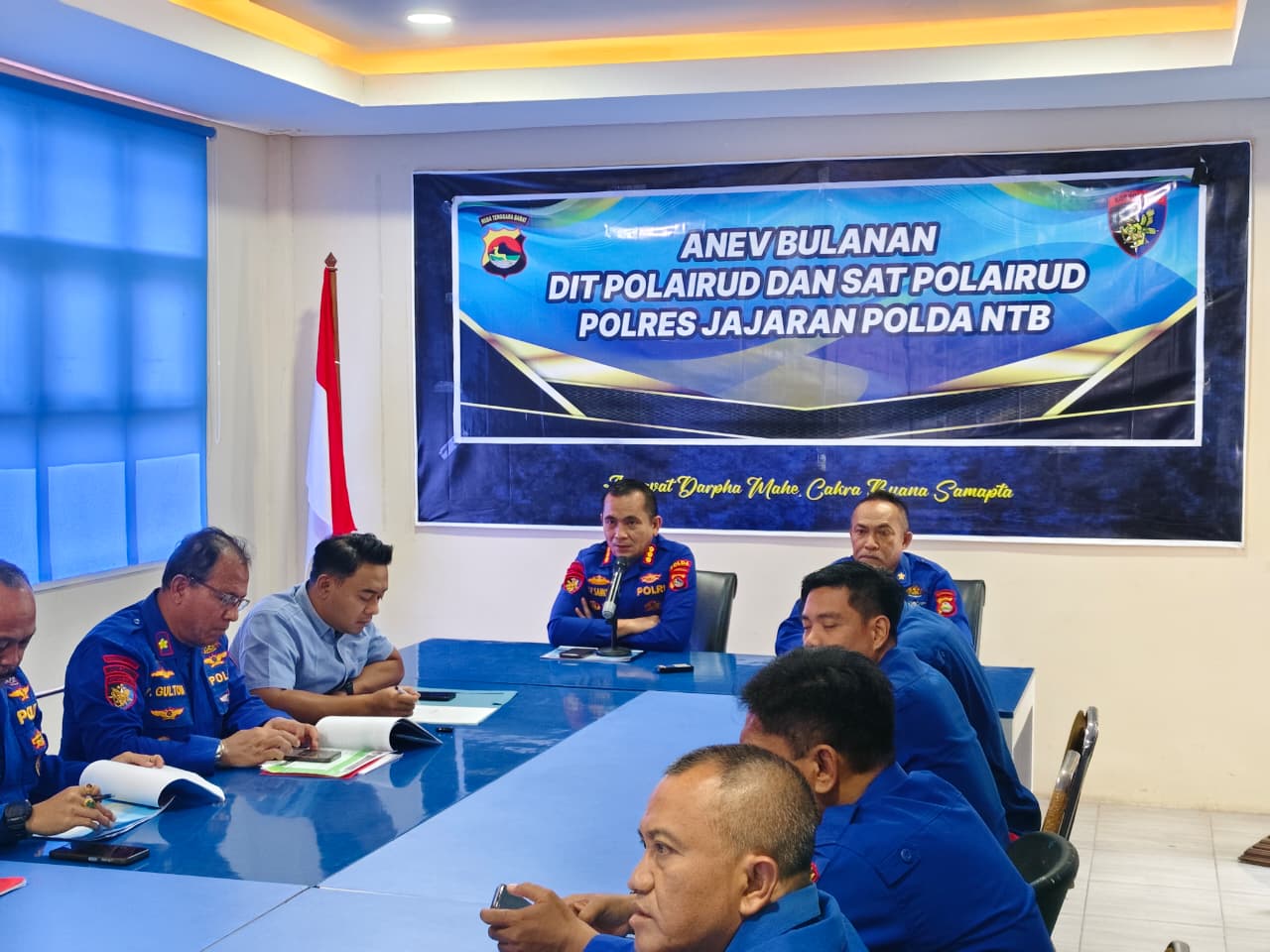 LCN – Mataram — Direktorat Polisi Perairan dan Udara (Ditpolairud) Polda NTB, melaksanakan kegiatan Analisa dan Evaluasi (Anev) bulanan terhadap kinerja personel, Kapal Polisi serta Satpolairud Polres jajaran Polda NTB. Kegiatan ini bertujuan untuk mengevaluasi pelaksanaan tugas sekaligus meningkatkan kesiapan personel dalam mendukung pelaksanaan tugas kepolisian diwilayah perairan.(12/03/2026)