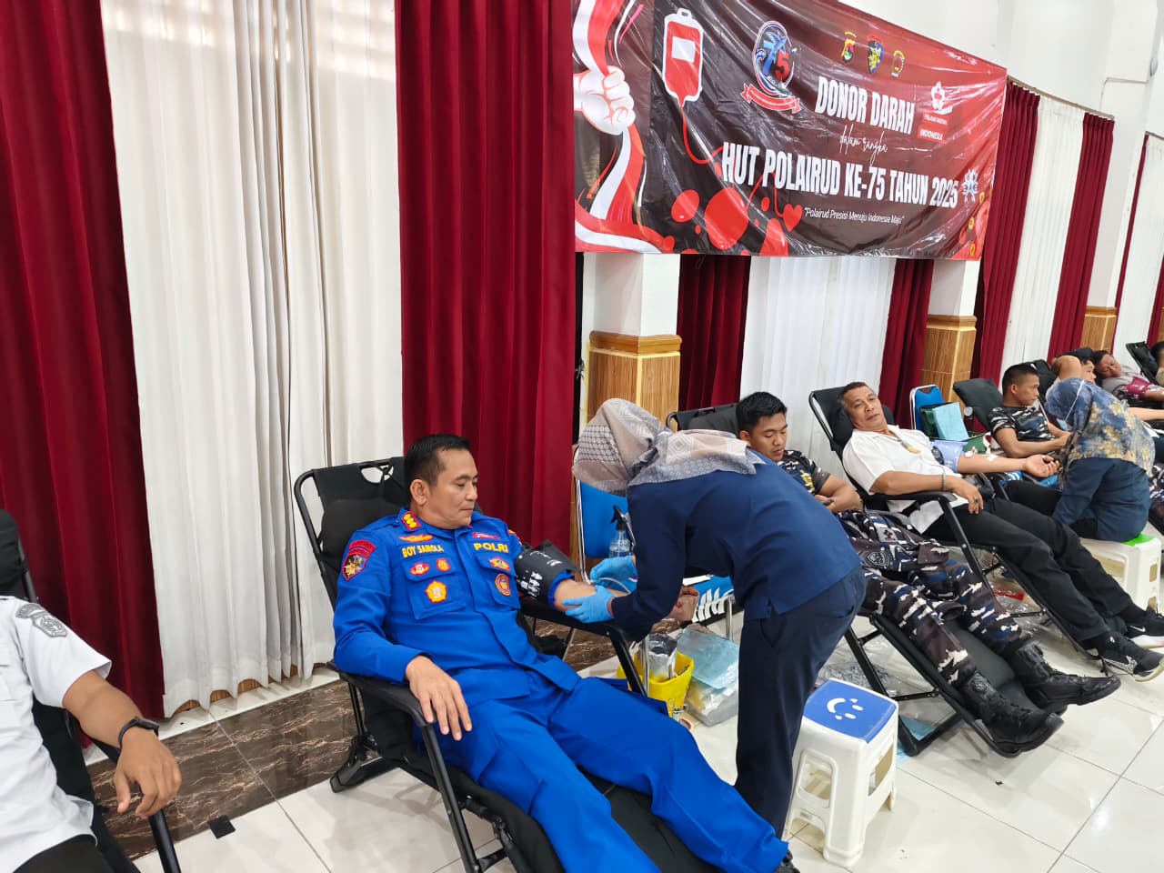 LCN – Mataram – Dalam rangka memperingati Hari Ulang Tahun (HUT) Polairud ke-75, Direktorat Polisi Perairan dan Udara (Ditpolairud) Polda NTB, menggelar kegiatan donor darah di Gedung Sasana Darma Polda NTB, Rabu (12/11/2025).