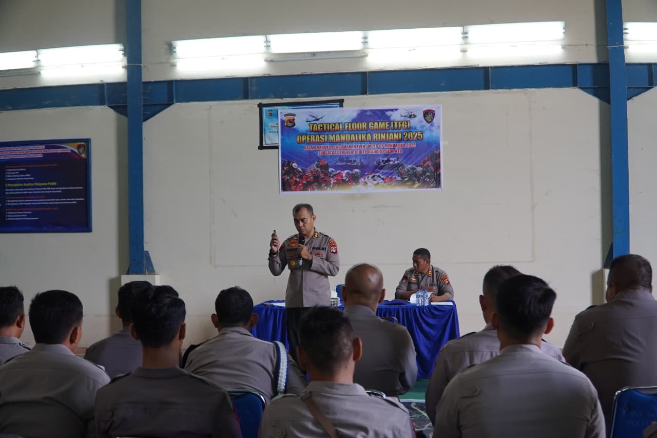LCN – Mataram – Direktorat Polisi Perairan dan Udara (Ditpolairud) Polda NTB, melaksanakan Tactical Floor Game (TFG) sebagai persiapan pengamanan Operasi Mandalika Rinjani 2025, yang bertujuan untuk mengamankan perhelatan MotoGP di Sirkuit Mandalika, Lombok. Kegiatan ini dipimpin langsung oleh Dirpolairud Polda NTB, Kombes Pol Boyke F.S. Samola, S.I.K., M.H., hari Senin, 29 September 2025.