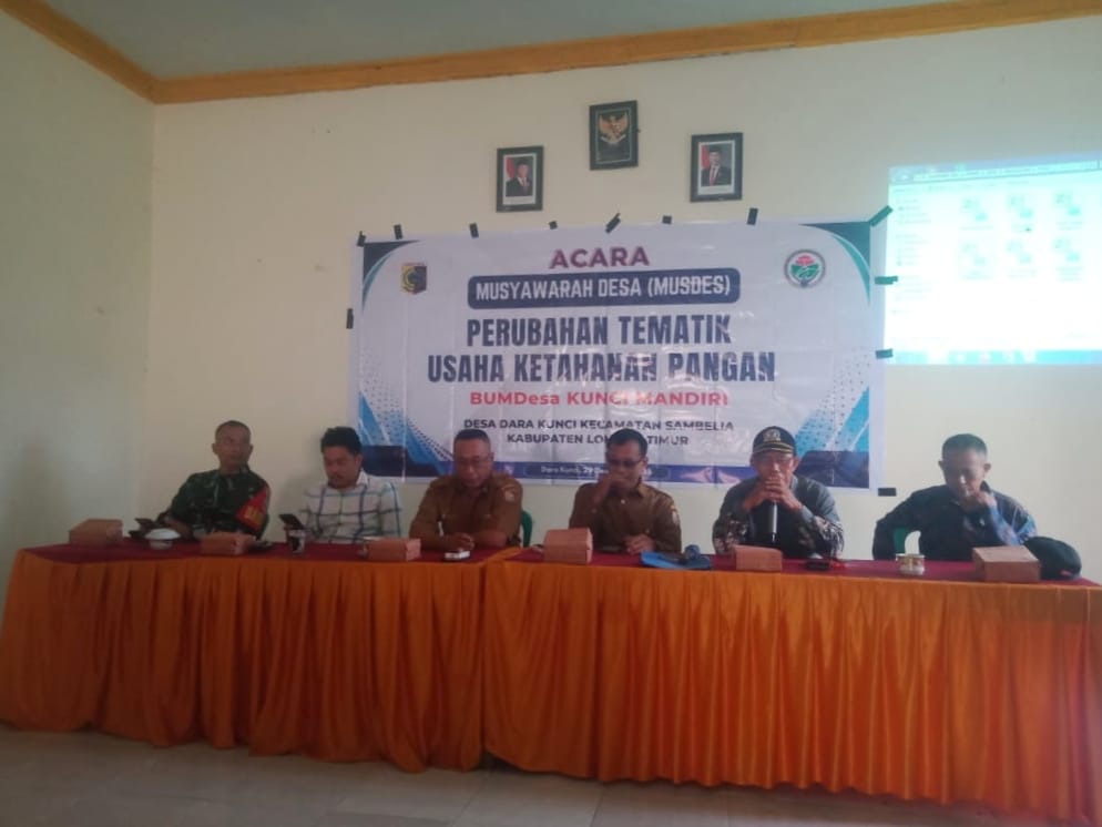 Secara keseluruhan, kegiatan Musdes Perubahan Tematik Usaha Ketahanan Pangan BUMDes Kunci Mandiri berjalan dengan tertib, aman, dan lancar, serta menghasilkan keputusan yang diharapkan dapat memberikan manfaat nyata bagi masyarakat Desa Darakunci,”tandasnya.