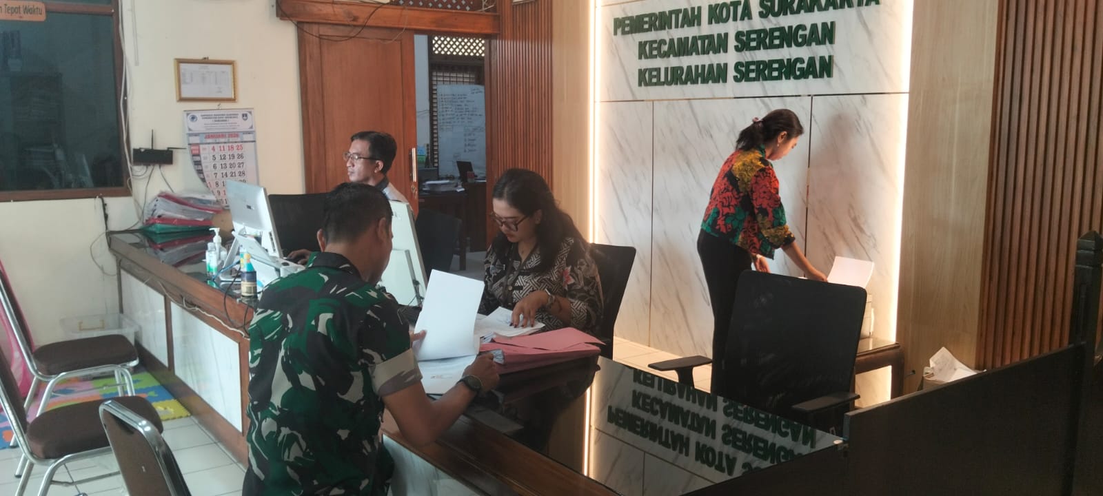LCN – Surakarta – Dalam rangka mendukung pelaksanaan tugas pembinaan teritorial di wilayah binaan, Serda Djoko Riyadi Babinsa Serengan Koramil 03/Serengan Kodim 0735/Surakarta melaksanakan kegiatan Pengumpulan Data Teritorial (Puldatater) di Kantor Kelurahan Serengan Kecamatan Serengan Kota Surakarta. Jum’at pukul 09.00 Wib (09 Januari 2026)