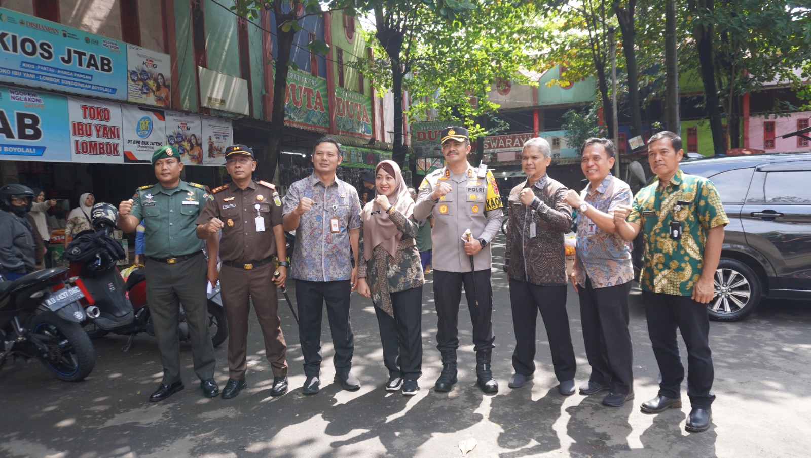 LCN – Boyolali-Perwira Seksi Teritorial Kodim 0724/Boyolali Kapten Inf Nasoha, turut mendampingi Forum Koordinasi Pimpinan Daerah (Forkopimda) Kabupaten Boyolali melakukan pemantauan harga kebutuhan pokok di Pasar Tradisional Sunggingan, Desa Banaran, Kecamatan Kota Boyolali, Kamis (12/02/2026). Kegiatan ini dilakukan untuk memastikan stabilitas harga dan ketersediaan bahan pokok menjelang bulan Ramadan.