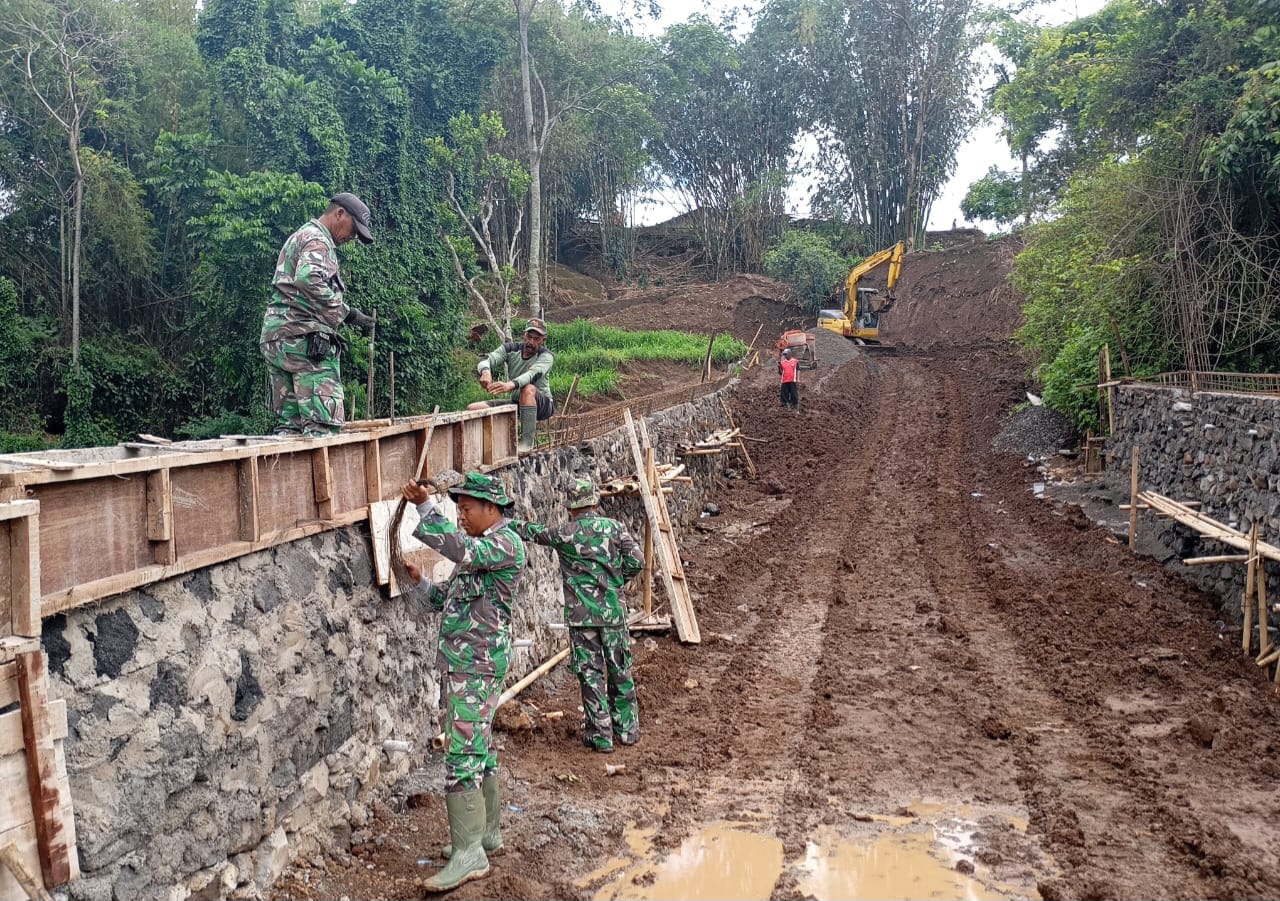 LCN – Boyolali – Cuaca cerah di Desa Candi, Kecamatan Ampel, Kabupaten Boyolali, menjadi semangat tersendiri bagi anggota Satuan Tugas (Satgas) TNI Manunggal Membangun Desa (TMMD) Sengkuyung Tahap IV Kodim 0724/Boyolali. Sejak pagi, prajurit TNI bersama warga setempat tampak bahu-membahu mempercepat pembangunan talud disepanjang jalan Desa, Minggu (26/10/2025).