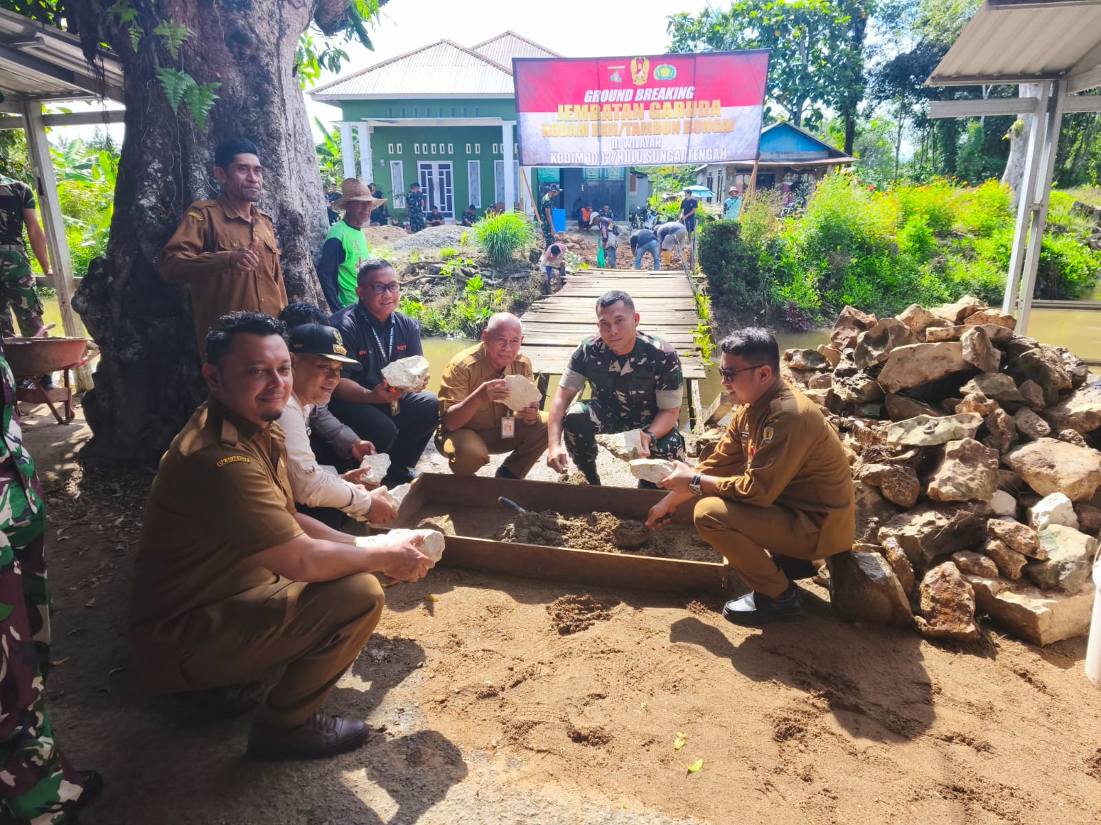 Kegiatan ground breaking ini turut dihadiri oleh Bupati HST yang diwakili Asisten I, Kepala Dinas Pendidikan HST, Kadis PUPR HST, perwakilan Bank BNI Barabai, Camat Batu Benawa, Kapolsek Batu Benawa, para Danramil dan Perwira Staf Kodim 1002/HST, tokoh agama, tokoh masyarakat, serta undangan lainnya,”tandasnya.