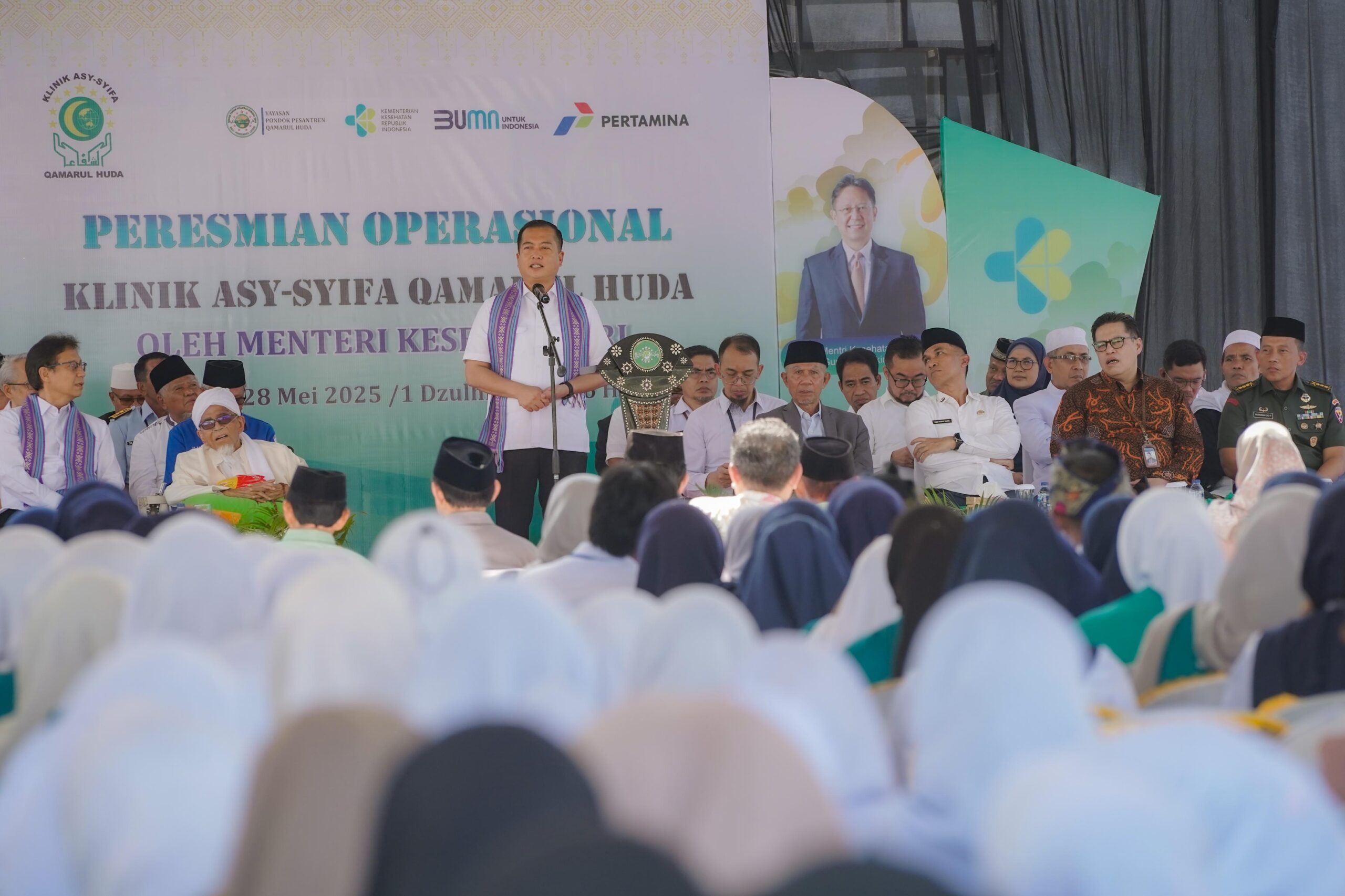 LCN – Gubernur NTB, Dr. Lalu Muhamad Iqbal, mendampingi Menteri Kesehatan RI, Budi Gunadi Sadikin, meresmikan operasional Klinik Asy Syifa Qamarul Huda di Lombok Tengah, Rabu (28/05/2025). Kehadiran keduanya turut disambut hangat oleh Pendiri Pondok Pesantren NU Qomarul Huda, TGH. Lalu Muhammad Turmudzi Badaruddin.