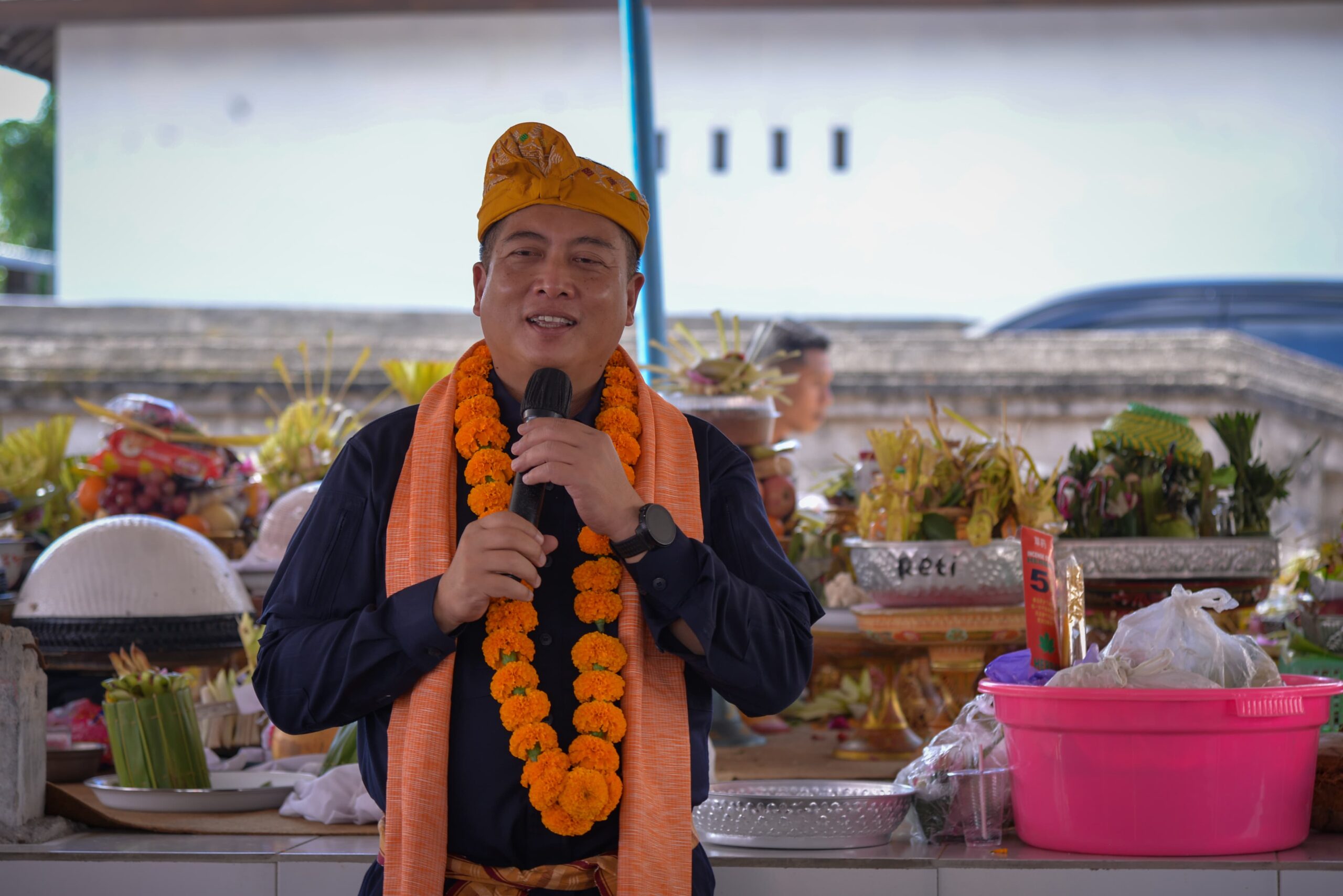 LCN – Gubernur NTB, Dr. Lalu Muhamad Iqbal, melakukan peletakan batu pertama pembangunan kembali Pura Banjar Dharma Yasa yang runtuh beberapa waktu lalu, di Dusun Gumise Timur, Desa Giri Tembesi, Kabupaten Lombok Barat, Sabtu (31/05/2025).