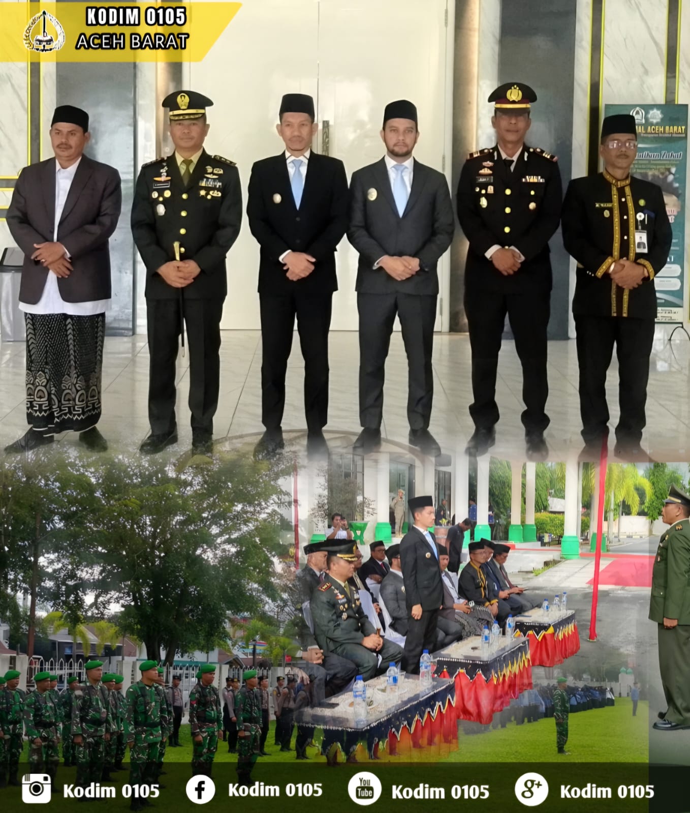 LCN – Aceh Barat – Dandim 0105/Abar Letkol Inf S Kembaren,S.E.,M.I.P.,CFrA., bersama unsur Forkopimda lainnya menghadiri Upacara Hari Bela Negara (HBN) yang ke-77 Tahun di Lapangan Hijau Kantor Bupati Aceh Barat Jalan Gajah Mada Desa Drien Rampak Kecamatan Johan Pahlawan, Jum’at (19/12/2025)