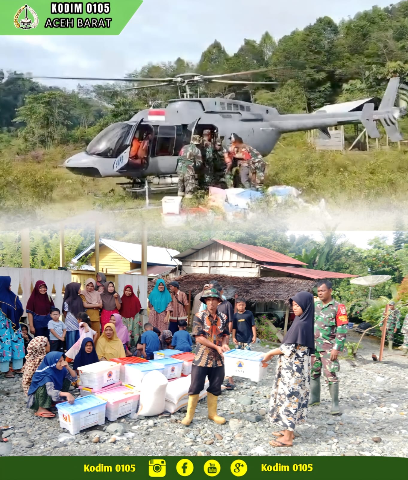 “Ditengah ujian ini, solidaritas dan kepedulian menjadi kunci utama. Dengan adanya bantuan yang dikirim menggunakan Helikopter ini sangat membantu masyarakat dalam memenuhi kebutuhan dasar dan dapat memberikan semangat untuk segera pulih. Kami dari Kodim 0105/Abar akan terus hadir ditengah masyarakat serta memastikan proses pemulihan dapat berlangsung optimal”, demikian pungkas Dandim.