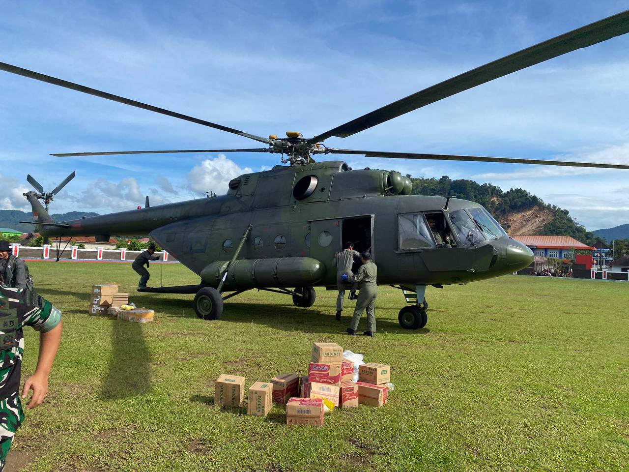 Pendistribusian bantuan logistik bagi masyarakat terdampak bencana di dua lokasi tersebut dilakukan menggunakan Hellikopter Bell 412EPI No. Reg. HA-5230, Bell 412EP HA-5176 masing-masing dengan kapasitas maksimal 600 kg dan Helikopter MI 17V5 No. Reg. HA-5140 dengan kapasitas maksimal 1.200 kg.