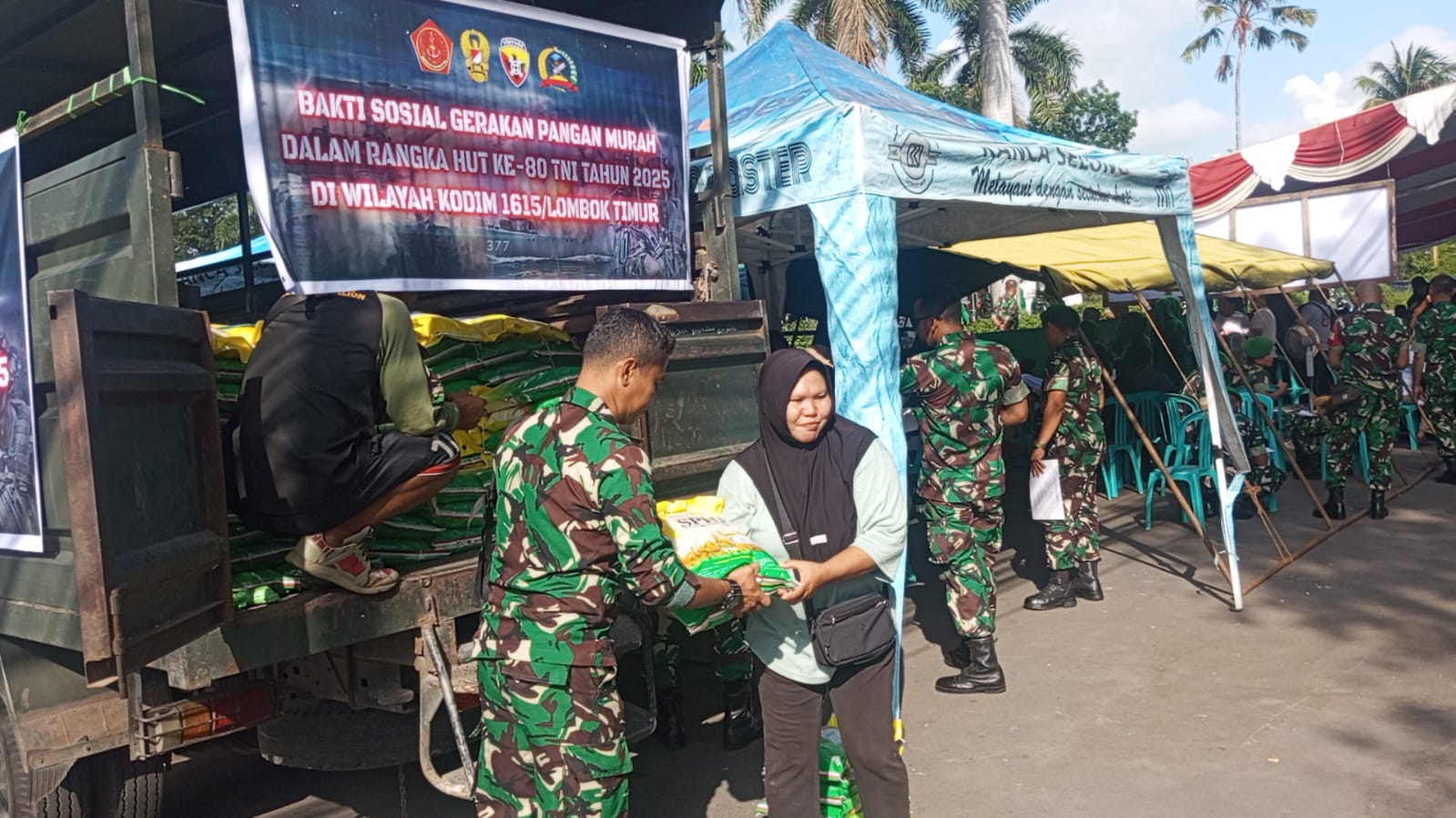 Dalam pelaksanaannya, Kodim 1615/Lotim mendistribusikan 3 ton beras kepada masyarakat dengan harga murah. Program ini bertujuan meringankan beban warga, khususnya dalam menghadapi fluktuasi harga pangan dipasaran. Kehadiran Gerakan Pangan Murah dimomen peringatan HUT TNI menjadi bukti nyata kepedulian TNI terhadap kesejahteraan masyarakat didaerah.