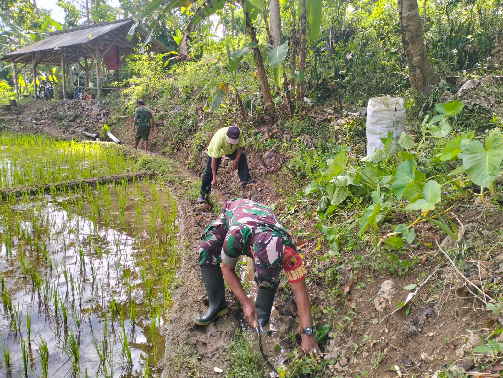 LCN – Blitar – Babinsa Desa Plandirejo Koramil 0808/17 Bakung Serda Supriyadi bersama warga Dusun Ngadirejo melaksanakan kegiatan gotong royong membersihkan saluran irigasi yang mengaliri area persawahan setempat, di Dusun Ngadirejo Desa Plandirejo Kecamatan Bakung Kabupaten Blitar, Jumat (28/11/2025). Kegiatan ini dilakukan sebagai upaya menjaga kelancaran distribusi air guna meningkatkan hasil pertanian masyarakat.