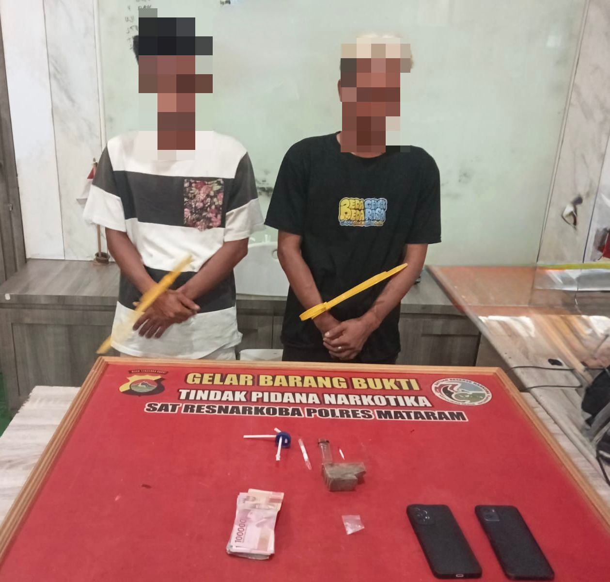 Dua sekawan ini diringkus Tim Opsnal Satresnarkoba Polresta Mataram Polda NTB, saat sedang asyik “nongkrong” dipinggir Jalan Peternakan, Selagalas, pada Sabtu sore (24/01/2026).