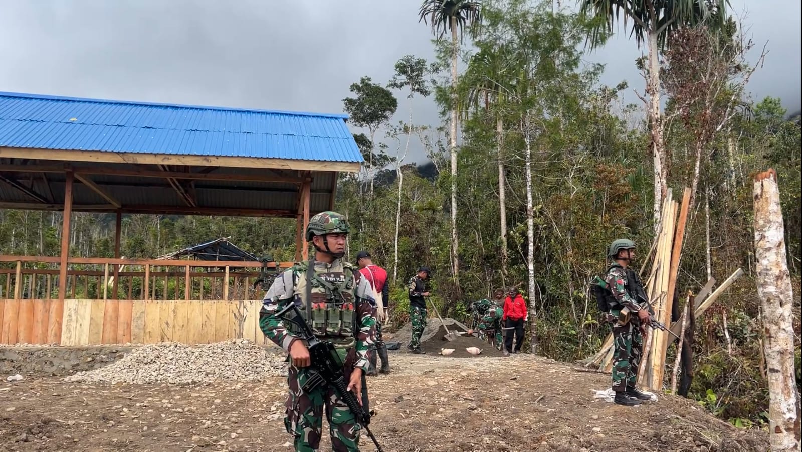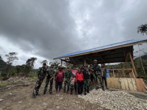 Timcyber—Okatem – Pegunungan Bintang, Papua. Sebagai bagian dari upaya meningkatkan kesejahteraan masyarakat perbatasan, prajurit Pos Okpol Satgas Pamtas RI–PNG Yonif 751/Vira Jaya Sakti (VJS) melaksanakan pembangunan kandang sapi di Kampung Okatem, Distrik Oksibil Kabupaten Pegunungan Bintang.(Minggu,21/9/2025).