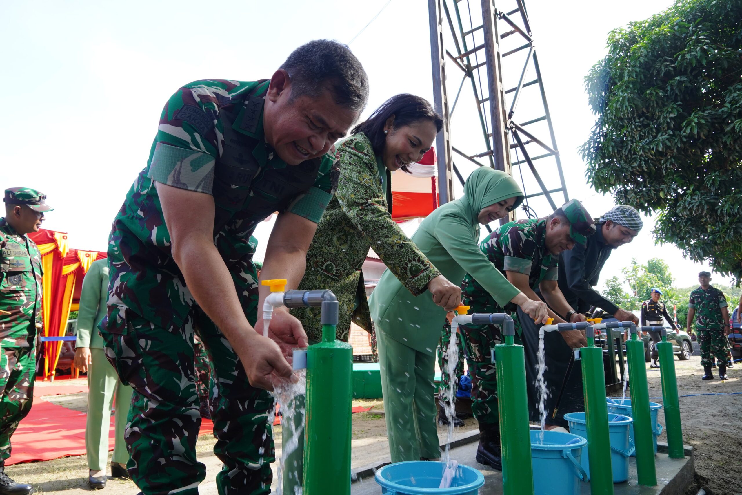 Didampingi Ketua Umum Persit Kartika Chandra Kirana Ny. Uli Simanjuntak, Kasad menegaskan bahwa TNI AD berkomitmen penuh untuk memberikan solusi nyata atas kebutuhan air bersih, irigasi pertanian, dan perkebunan yang mendukung ketahanan pangan nasional.