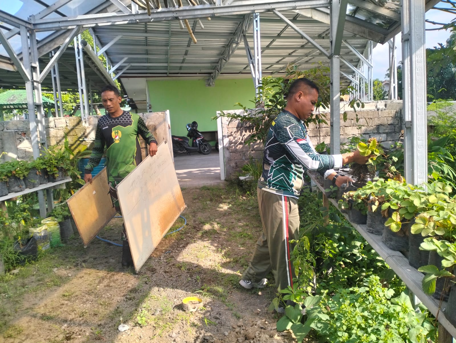 Danramil bersama seluruh anggota tampak kompak dalam melaksanakan pembersihan lingkungan satuan sebagai bentuk kepedulian terhadap kebersihan dan kesehatan lingkungan kerja.