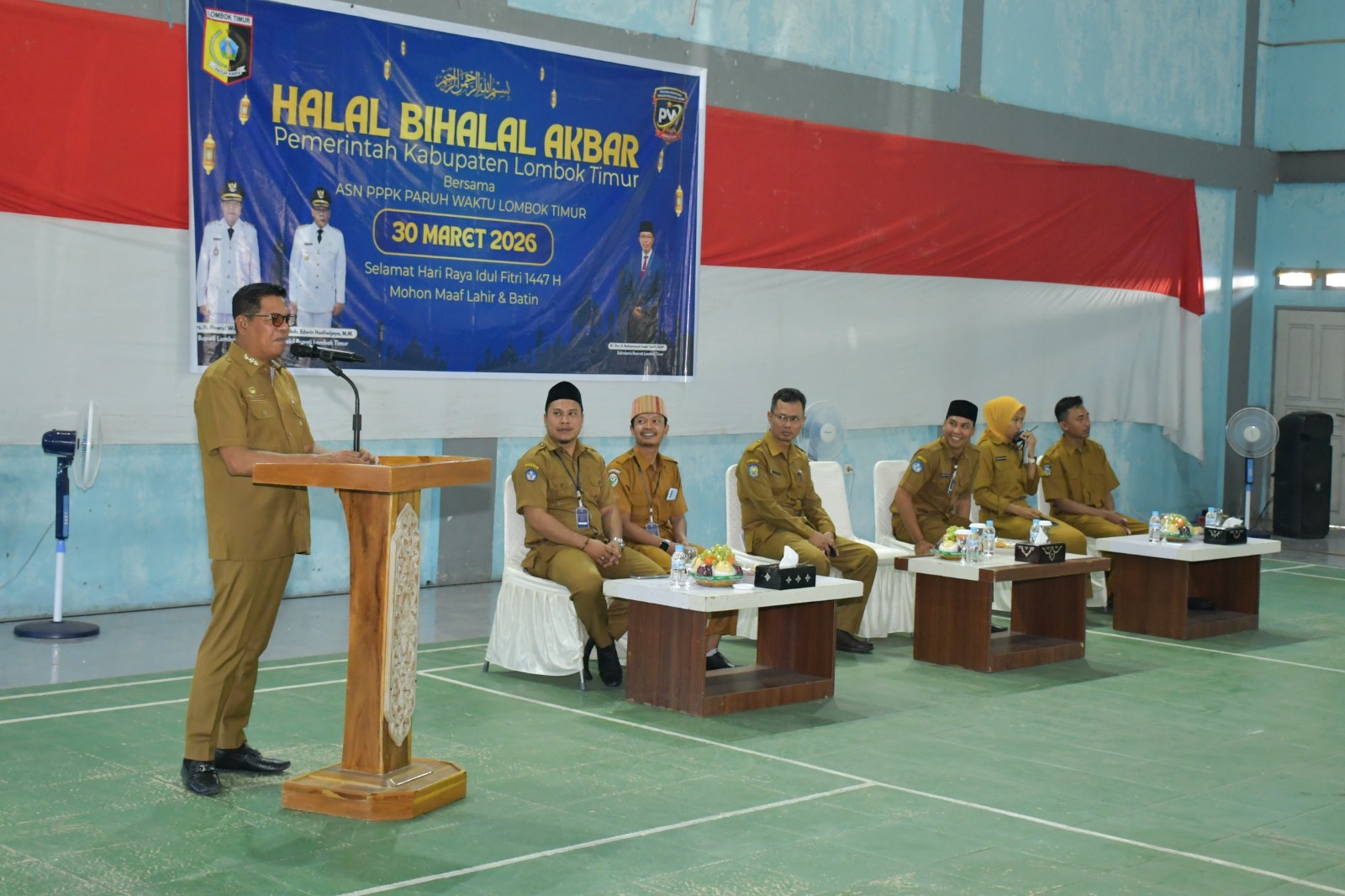 ​Hal tersebut ditegaskan Bupati dalam acara Silaturahmi dan Halal bi Halal bersama jajaran PPPK Paruh Waktu lingkup Kabupaten Lombok Timur yang berlangsung di Gedung Serbaguna Dasan Lekong, Senin (30/03/2026).