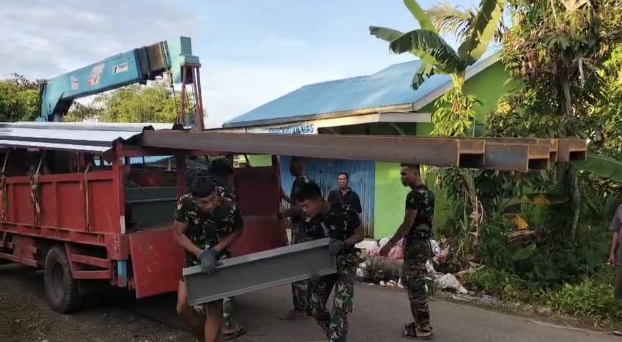 Hal ini terlihat dengan didatangkannya material besi jembatan yang akan digunakan sebagai rangka utama konstruksi, Jumat (17/04/2026).