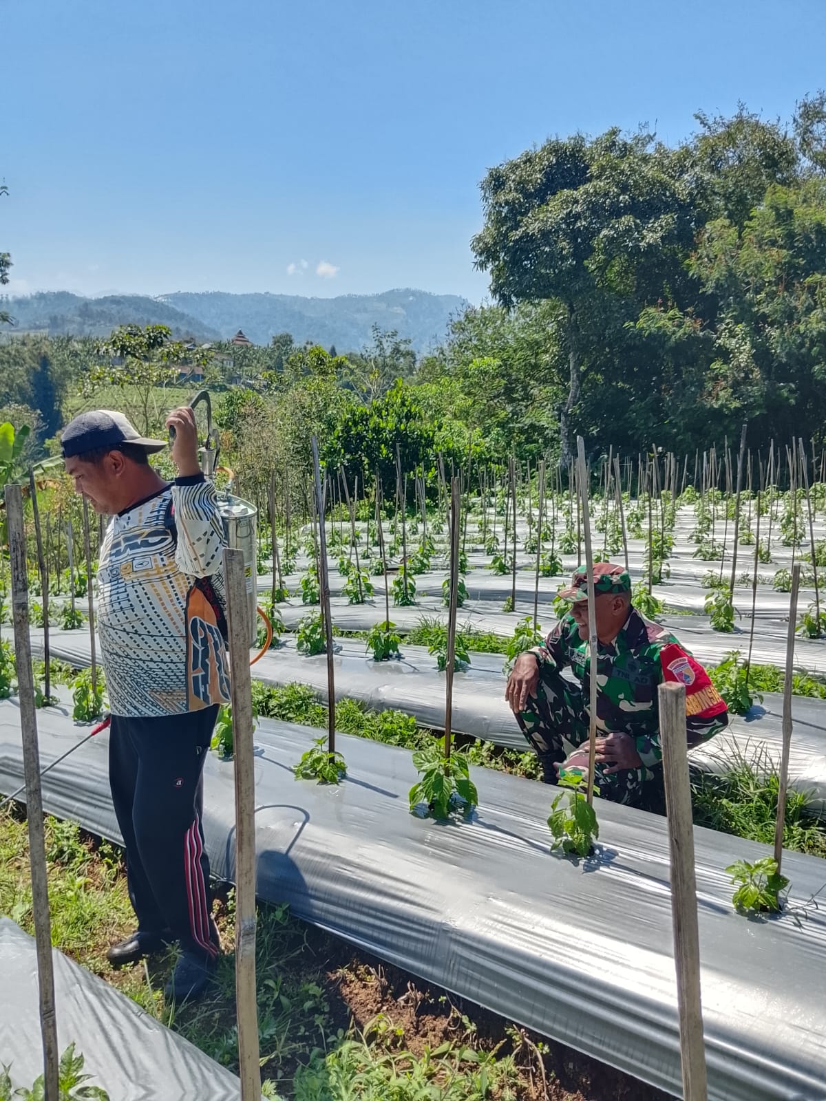 Sertu Hendro tampak ikut membantu petani dalam perawatan tanaman cabai, mulai dari pengecekan kondisi tanaman hingga pemupukan. Menurutnya, keterlibatan Babinsa disektor pertanian merupakan bagian dari tugas pembinaan teritorial yang bertujuan meningkatkan produktivitas pertanian dan memperkuat ketahanan pangan di Desa binaan.