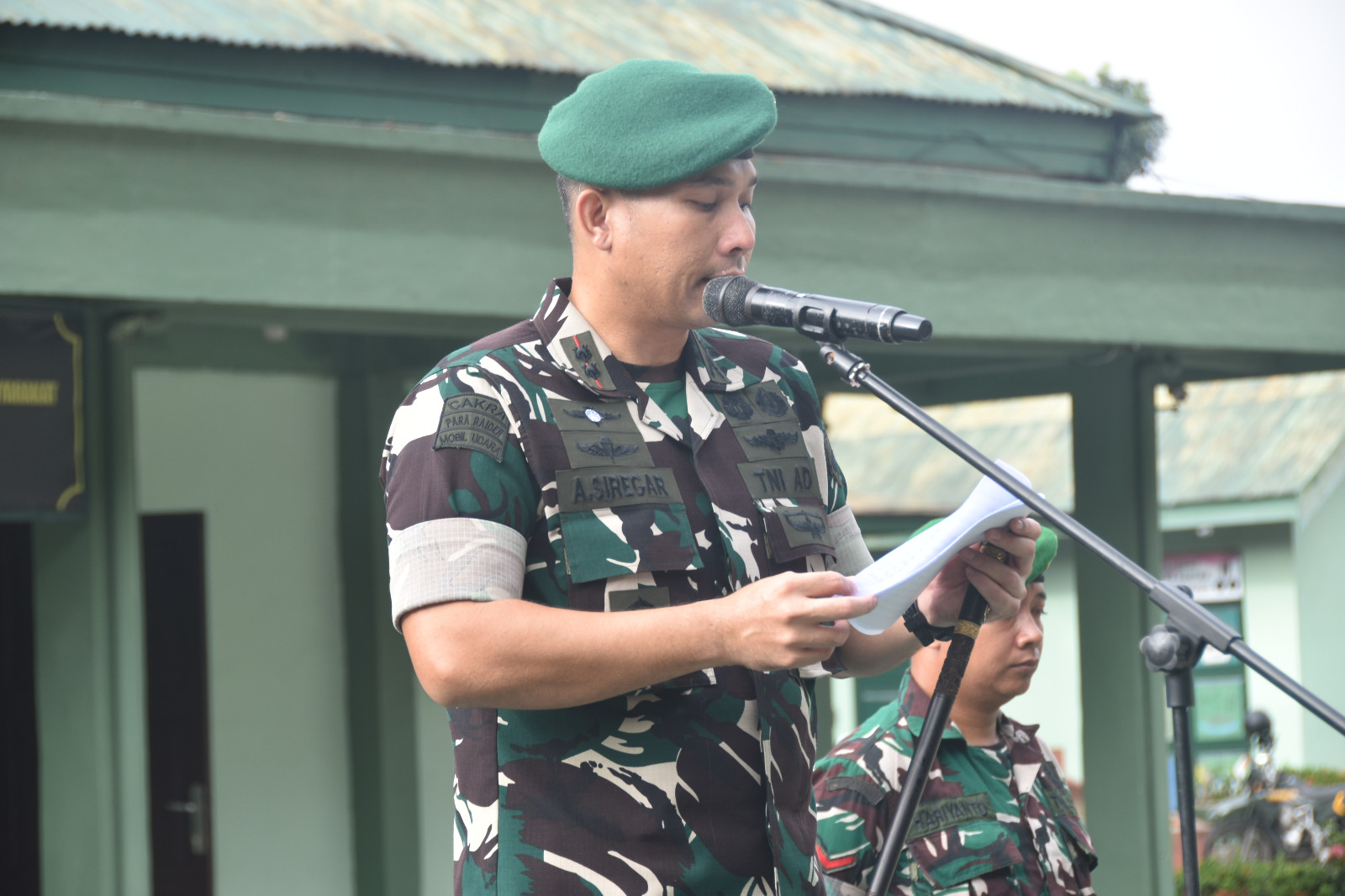 Diakhir amanatnya, Dandim mengajak seluruh prajurit untuk terus belajar dari pengalaman, mengembangkan kemampuan diri, serta melaksanakan tugas secara profesional dengan berpedoman pada Sapta Marga, Sumpah Prajurit dan Delapan Wajib TNI.