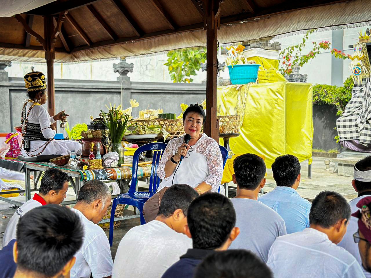Prosesi mecaru dipimpin oleh Ida Pandita Istri Nabe Tapakan Swi Mas Gangga Naraya dari Gedong Suci Griya Saksari dan diikuti dengan penuh kekhusyukan oleh para warga binaan.