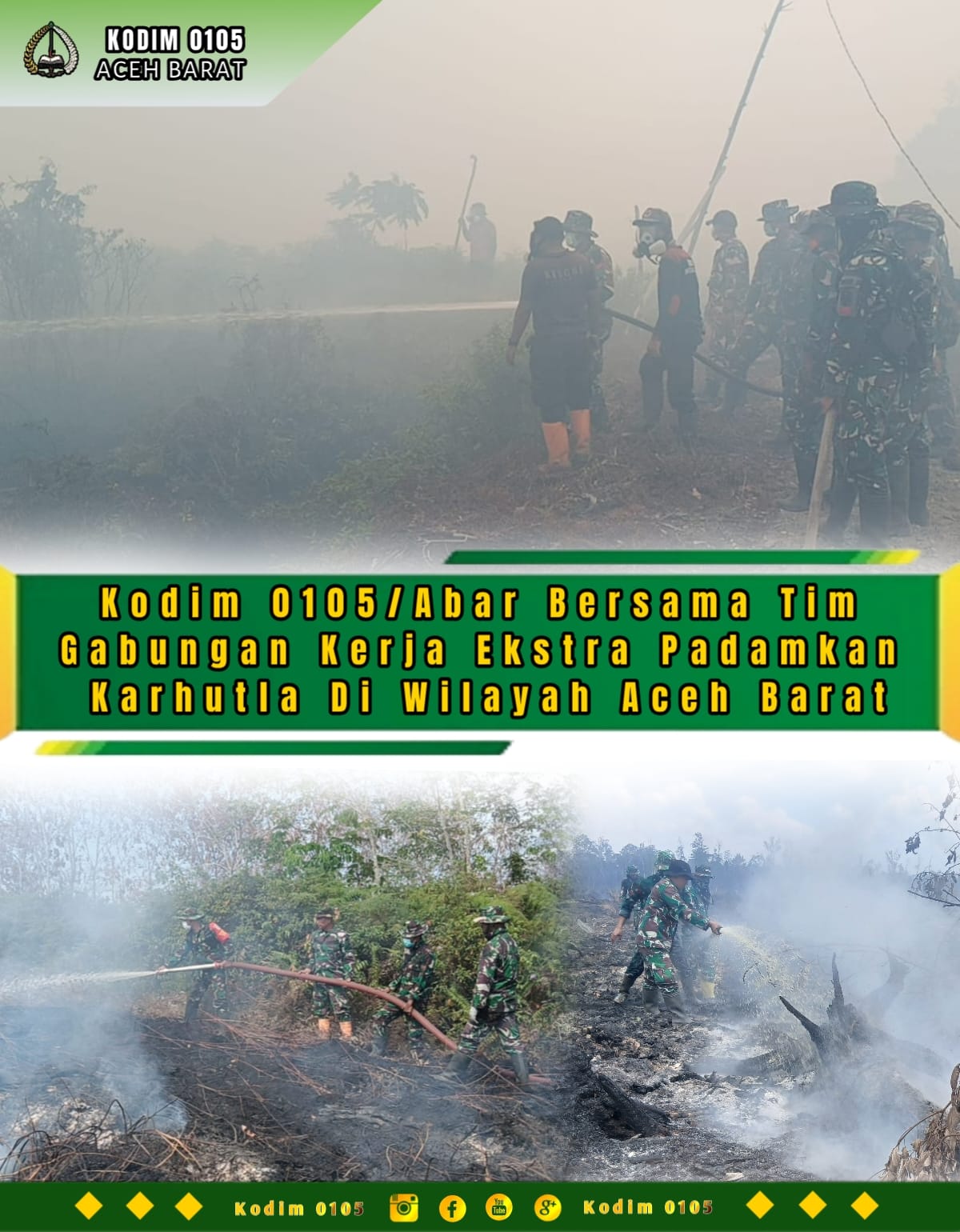 Kodim 0105/Abar Bersama Tim Gabungan Kerja Ekstra Padamkan Karhutla Di Wilayah Aceh Barat