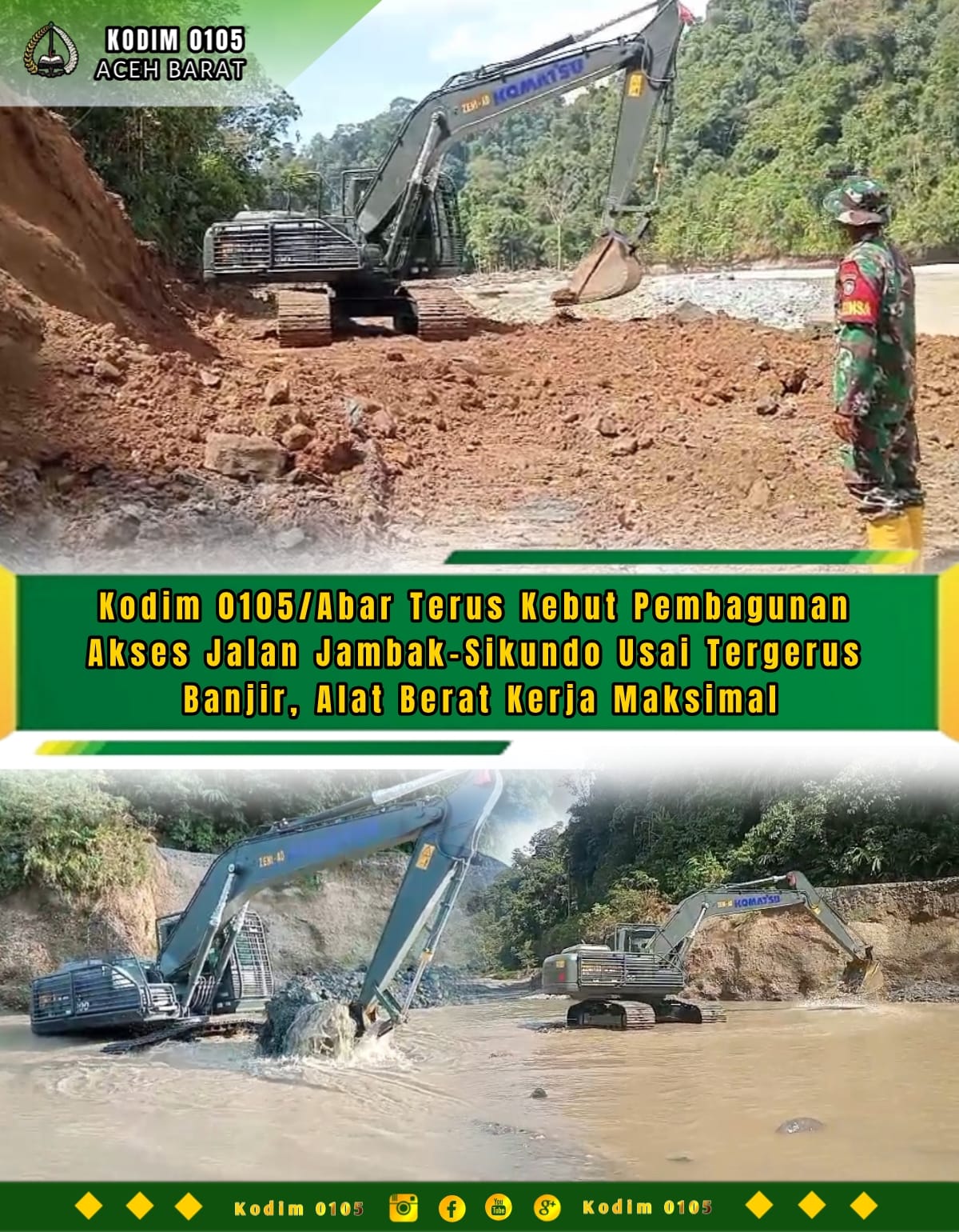 Kodim 0105/Abar Terus Kebut Pembagunan Akses Jalan Jambak-Sikundo Usai Tergerus Banjir, Alat Berat Kerja Maksimal