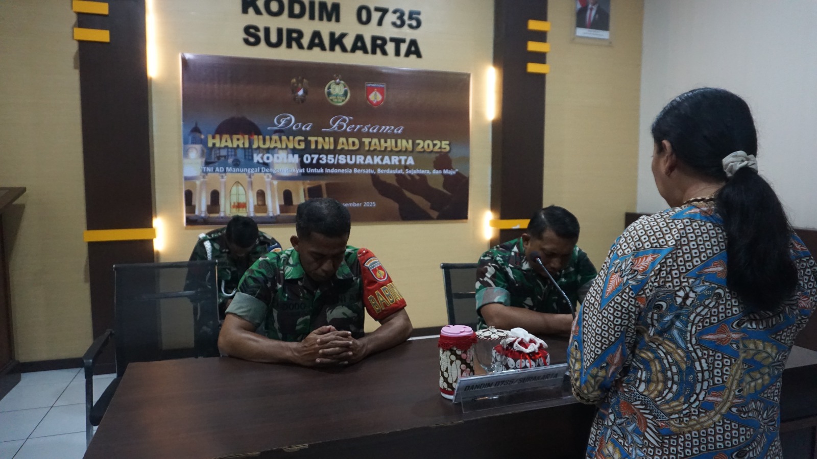 Dandim 0735/Surakarta Letkol Inf Arief Handoko Usman, S.H., mengatakan kegiatan do’a bersama yang dilaksanakan kali ini adalah dalam rangka memperingati Hari Juang TNI AD KE-80 Tahun 2025.