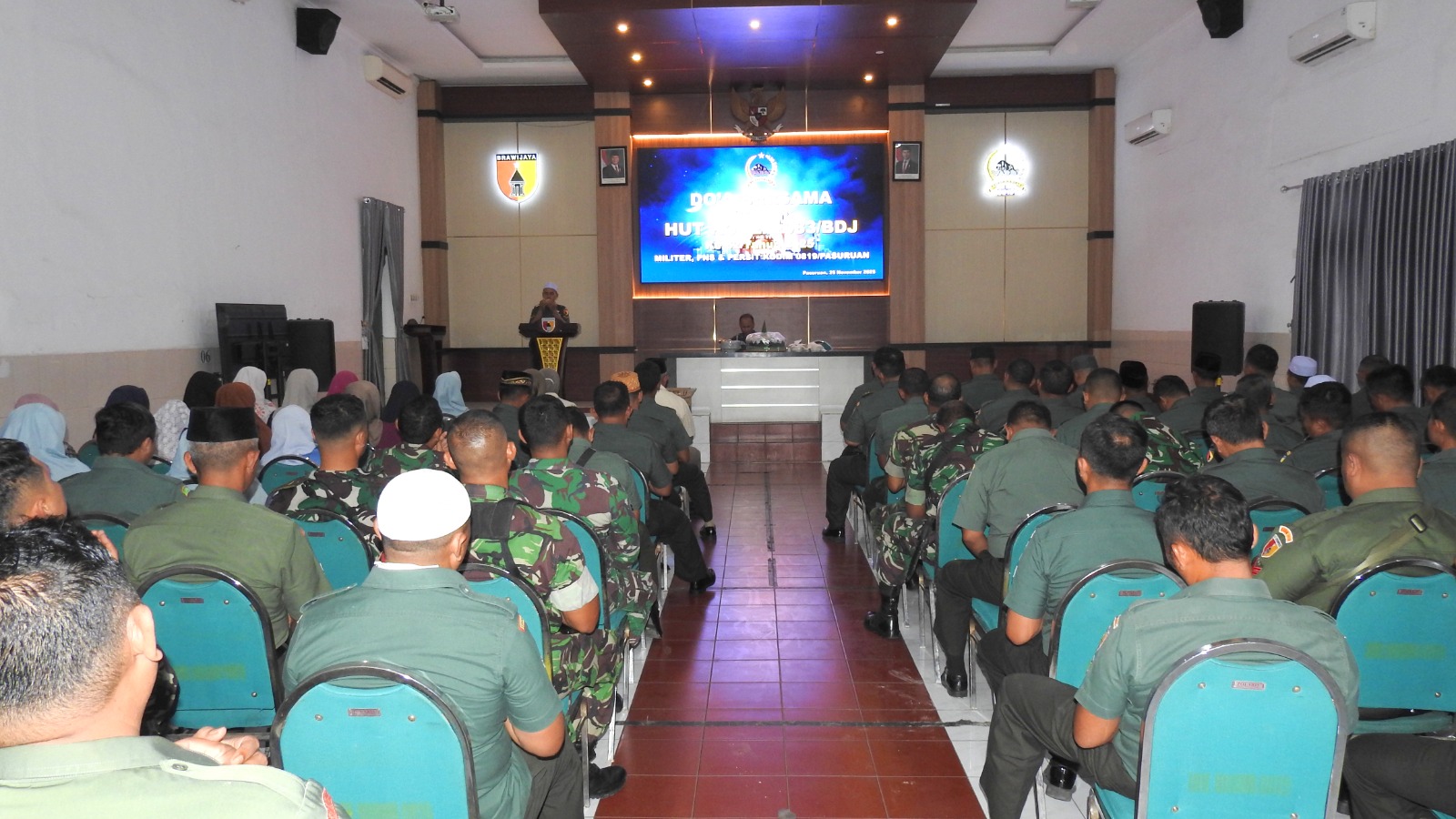 LCN – Pasuruan, Kodim 0819 Pasuruan menggelar doa bersama dalam rangka memperingati Hari Ulang Tahun ke-62 Korem 083/Baladhika Jaya. Kegiatan yang berlangsung dengan khidmat ini diikuti oleh seluruh anggota TNI, PNS, serta Persit Kartika Chandra Kirana Kodim 0819 Pasuruan. Doa bersama dipimpin oleh Serda Soleh dan berlangsung diaula Makodim dalam suasana penuh kekeluargaan dan harapan akan keberkahan bagi satuan. Selasa (25/11/2025).