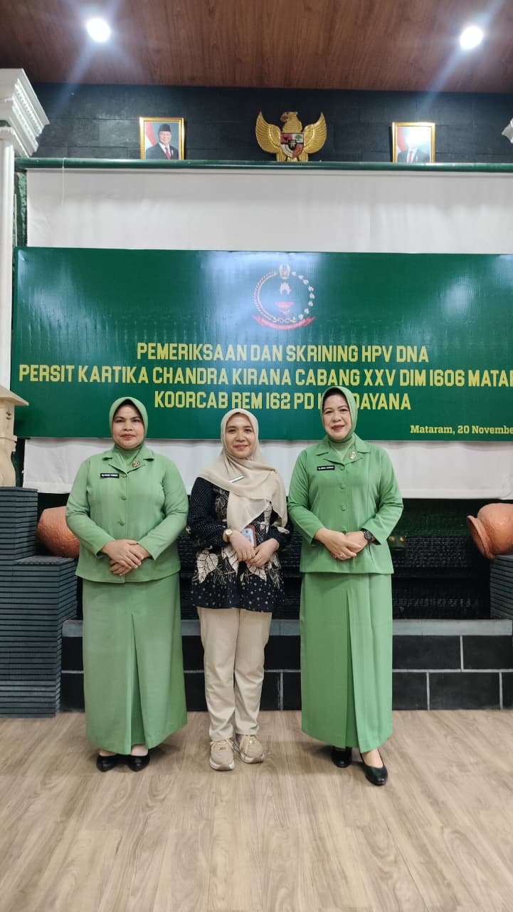 “Deteksi dini adalah kunci penyelamatan. Pemeriksaan HPV DNA memberikan gambaran awal risiko kanker serviks, sehingga tindakan pencegahan dapat dilakukan lebih cepat dan tepat. Kami mengapresiasi Kodim 1606/Mataram dan Persit yang sangat proaktif melindungi kesehatan para ibu,”ungkapnya.